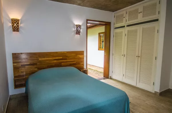 São duas suítes Masters 2 camas Queen de casal e mais 4 camas de solteiro, berço desmontável. 1 banheiro extra completo.