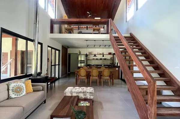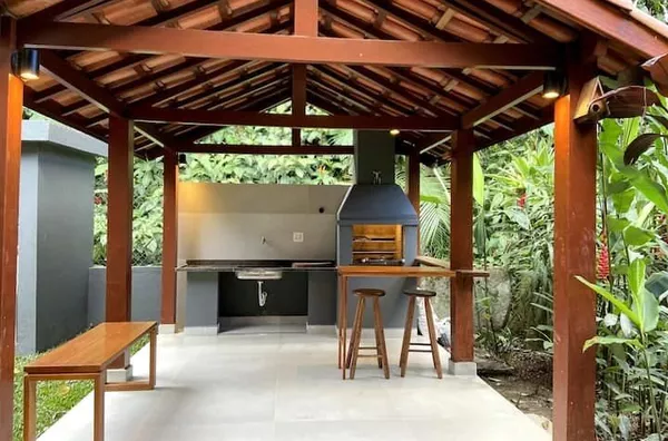 Casa completa, ampla, reformada recentemente, no condomínio de Itamambuca em terreno de esquina. Acomoda confortavelmente até 10 pessoas. A casa tem 4 suítes térreas, com ar condicionado e ventilador de teto. Banheiros tem toalheiros elétricos para manter as toalhas sempre secas. Todas as camas contam com lençol térmico para as noites mais frescas. Umas das suítes é um Studio com acesso externo a casa e conta com uma mini cozinha, sofá cama e um deck privativo. Sala com dois ambientes, cozinha americana e lavabo. Mezanino com espaço cinema com smart TV e bancada para estudos ou trabalho. Piscina e jacuzzi com amplo deck de teca conectado a varanda que contorna a casa. Lado par da praia com mais tranquilidade, PERFEITA para famílias. .*Não é permitido PET. Nem fazer festas grandes com som alto.
