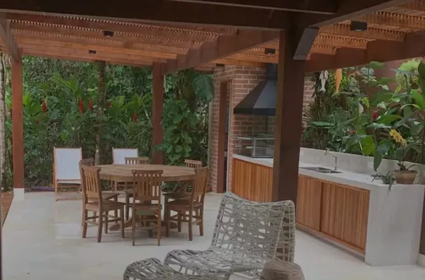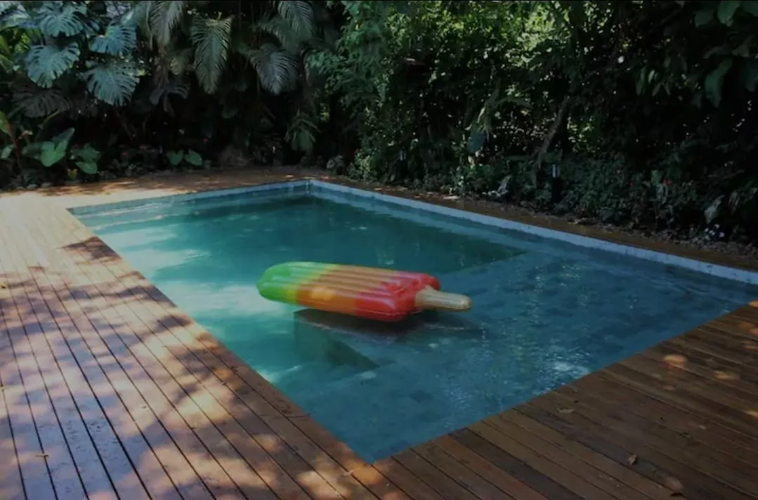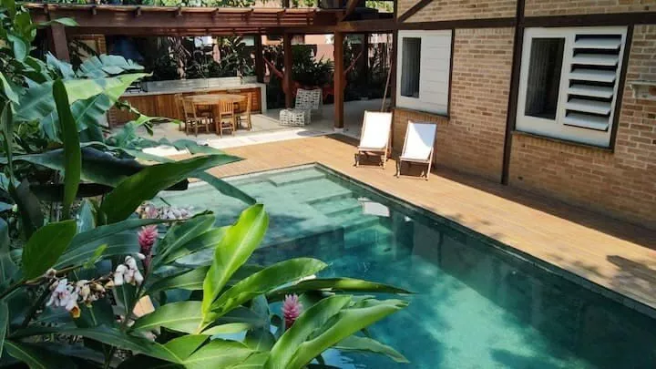 Com uma área de churrasco , os hóspedes podem desfrutar do lazer de um belo churrasco curtindo também nossa piscina. Essa parte é o ponto alto da casa. Tratamos a água com íons de cobre, o que a deixa muito mais agradável sem agredir a pele, olhos e cabelo.