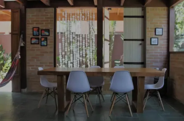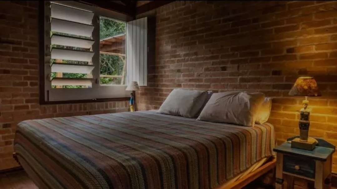 Casa toda de tijolinhos traz uma aconchegante hospedagem à 50 metros do mar , acomoda 8 pessoas.