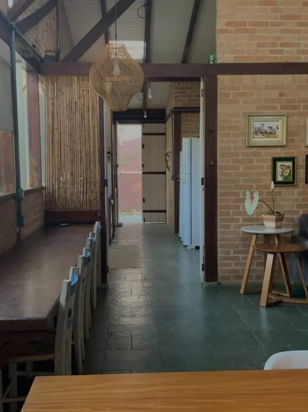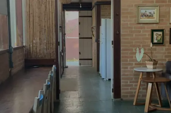 Casa térrea, com 4 quartos, sendo um deles suíte. Esses ficam localizados em um corredor mais reservado da casa com mais 2 banheiros.
