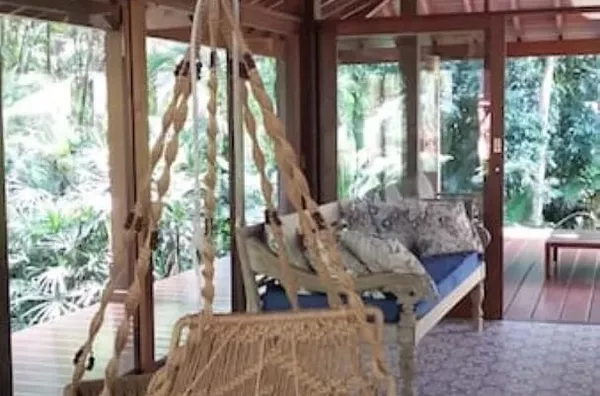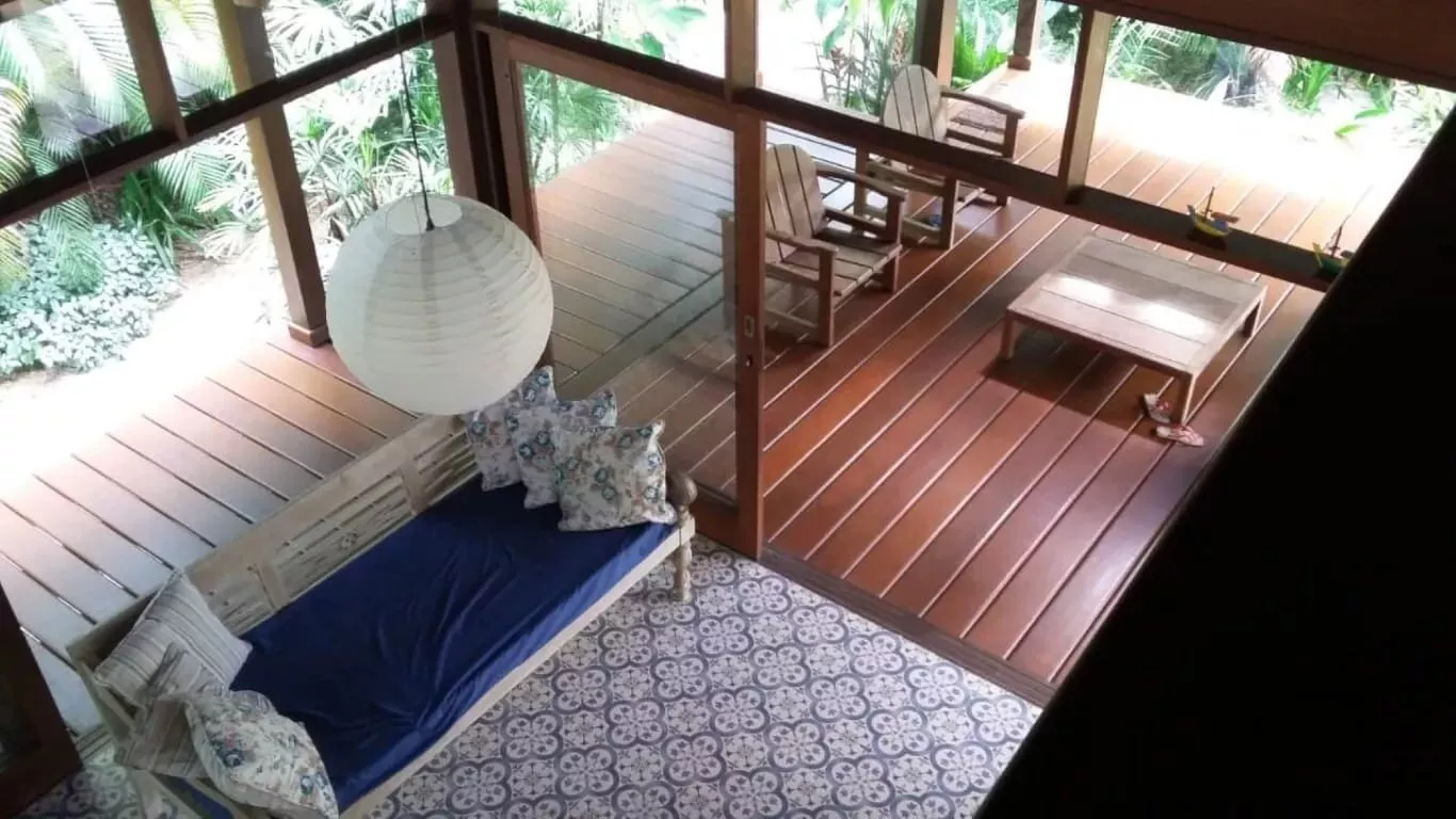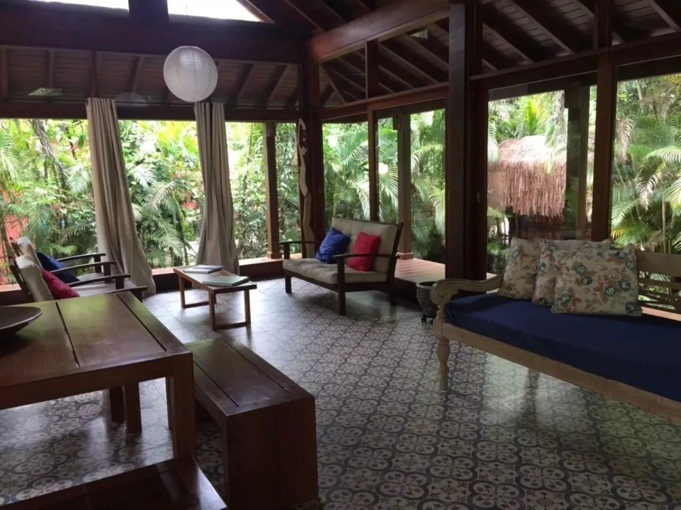 Distância do mar 300 metros casa encantadora com estilo balinês, piso de azulejo hidráulico. persianas de madeira que ser abrem totalmente. excelente circulação de ar, muito iluminada.