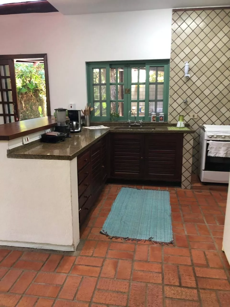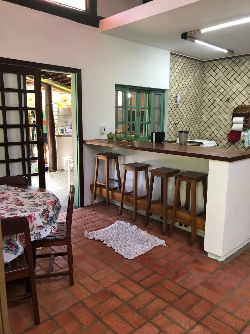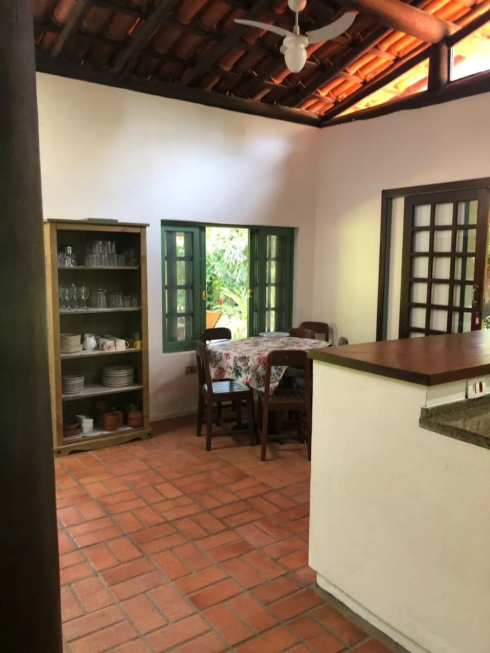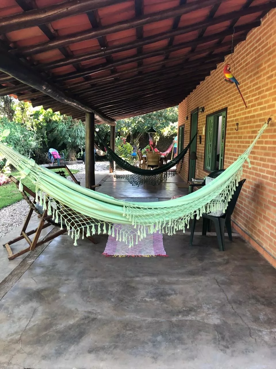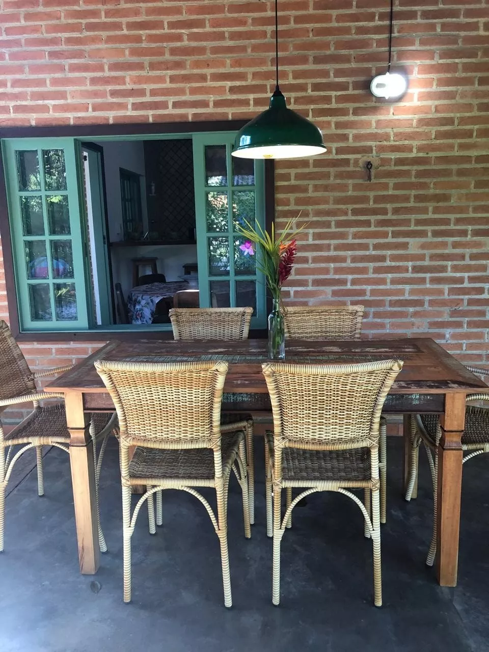 Casa de tijolos rústica, com ampla varanda e área de churrasco, belo jardim adaptado para cadeirantes
