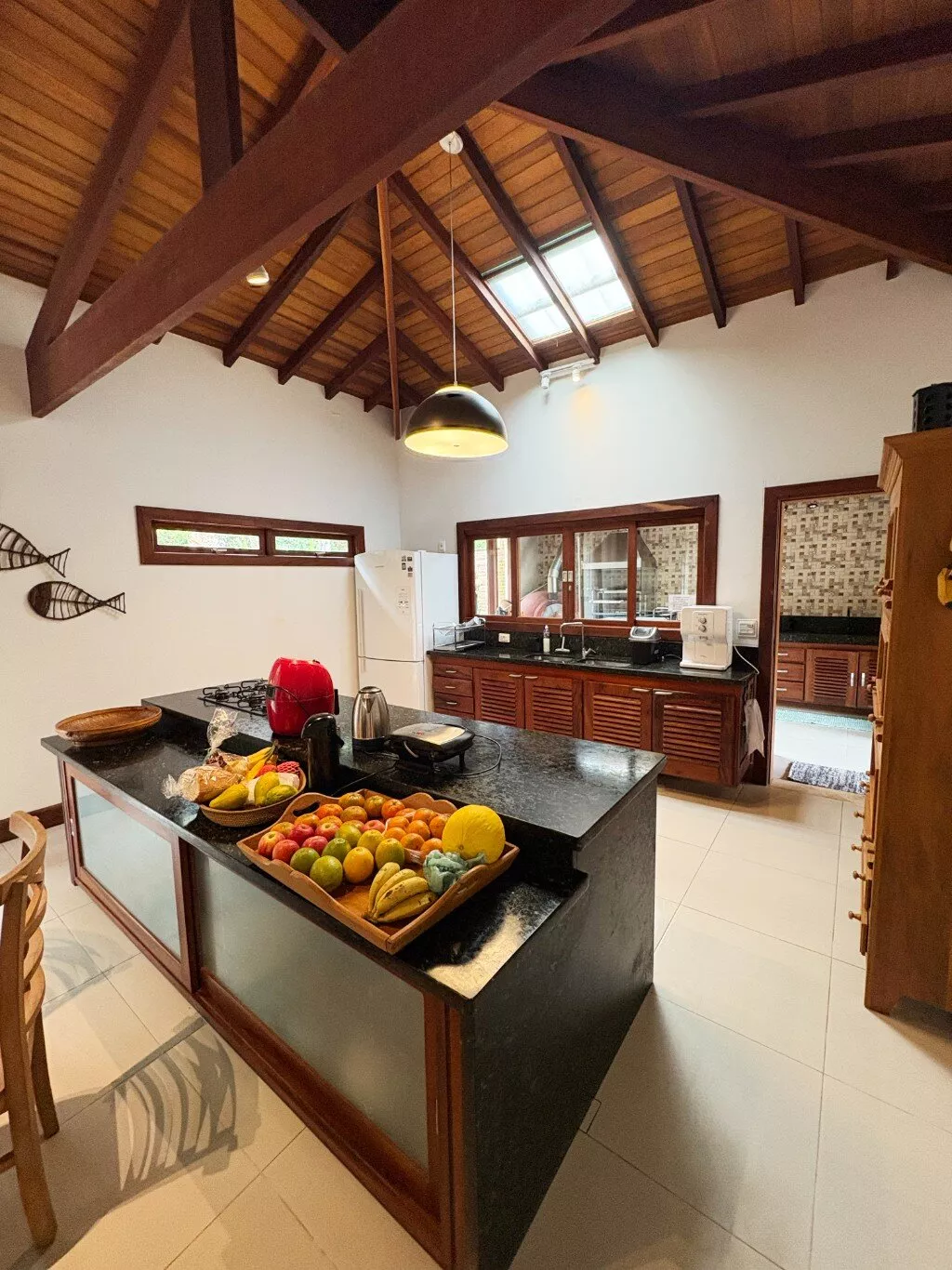 O acabamento é moderno, com piso e detalhes que deixam a casa ainda mais elegante, mas sem perder a sensação de casa de praia. E quando a ideia é relaxar, a diversão está garantida: piscina, churrasqueira e forno de pizza para aqueles dias sem pressa.