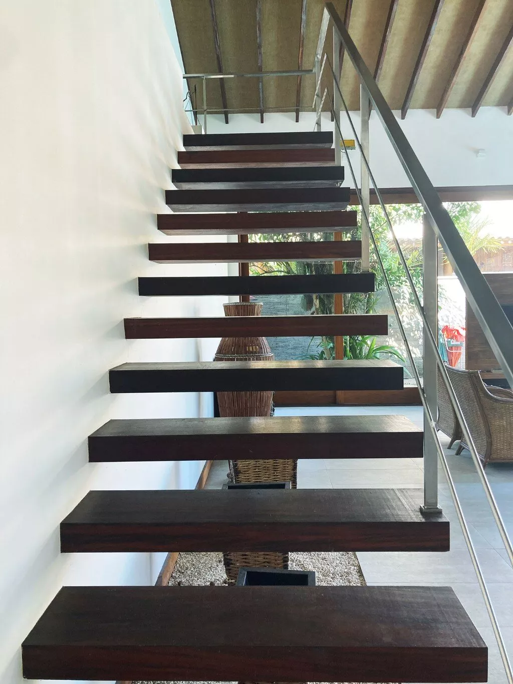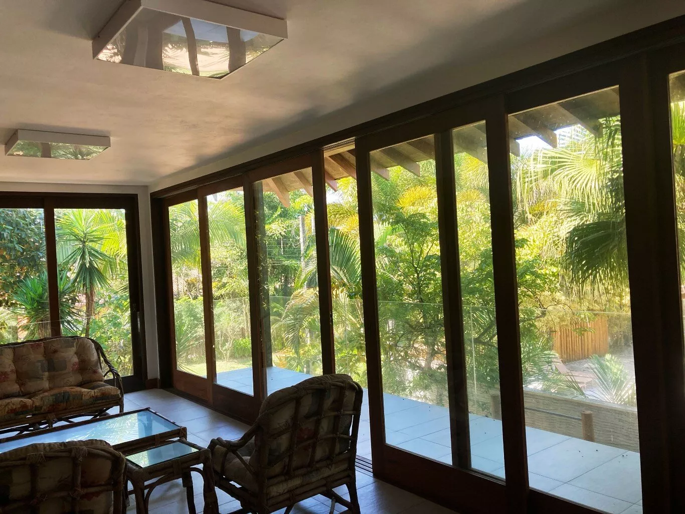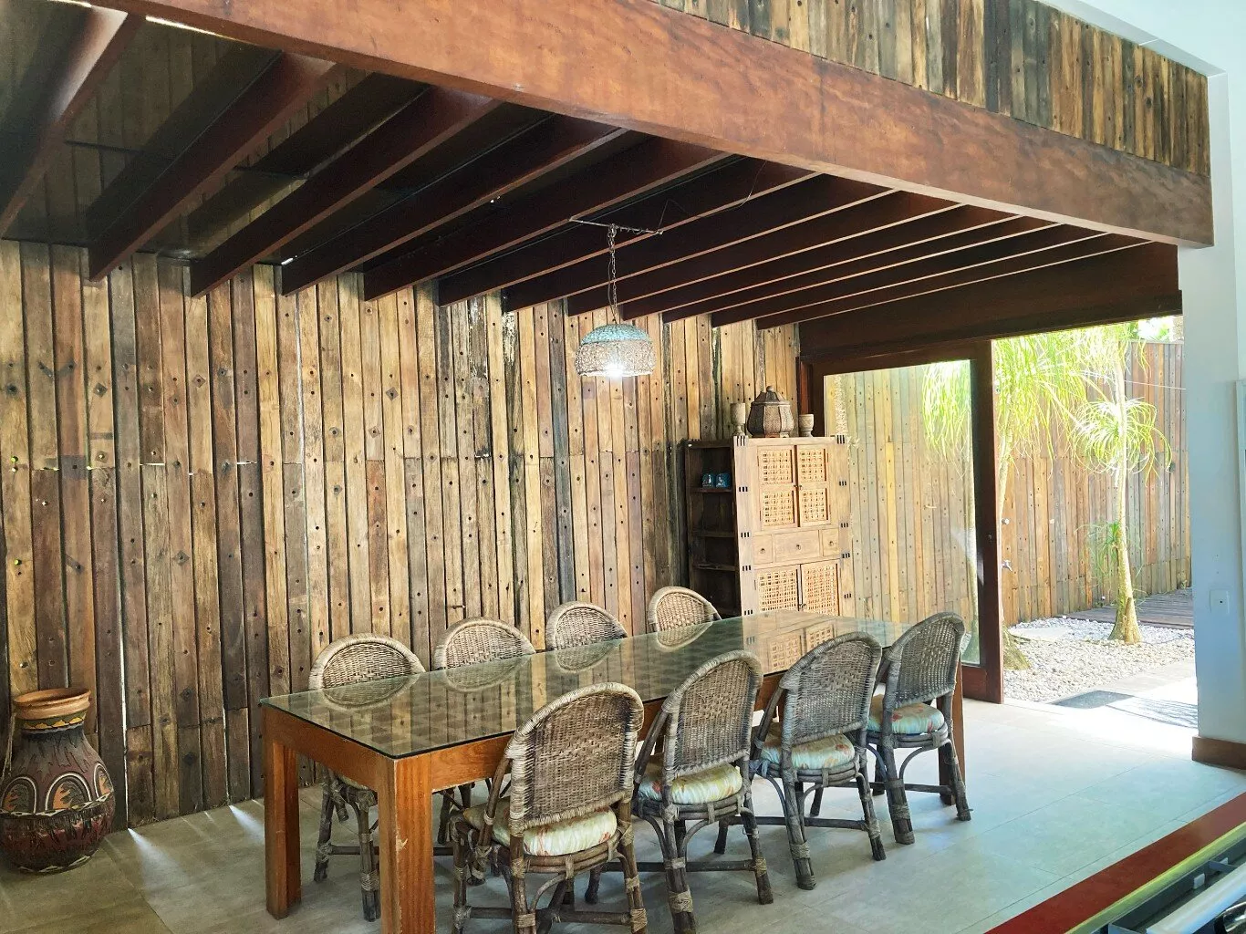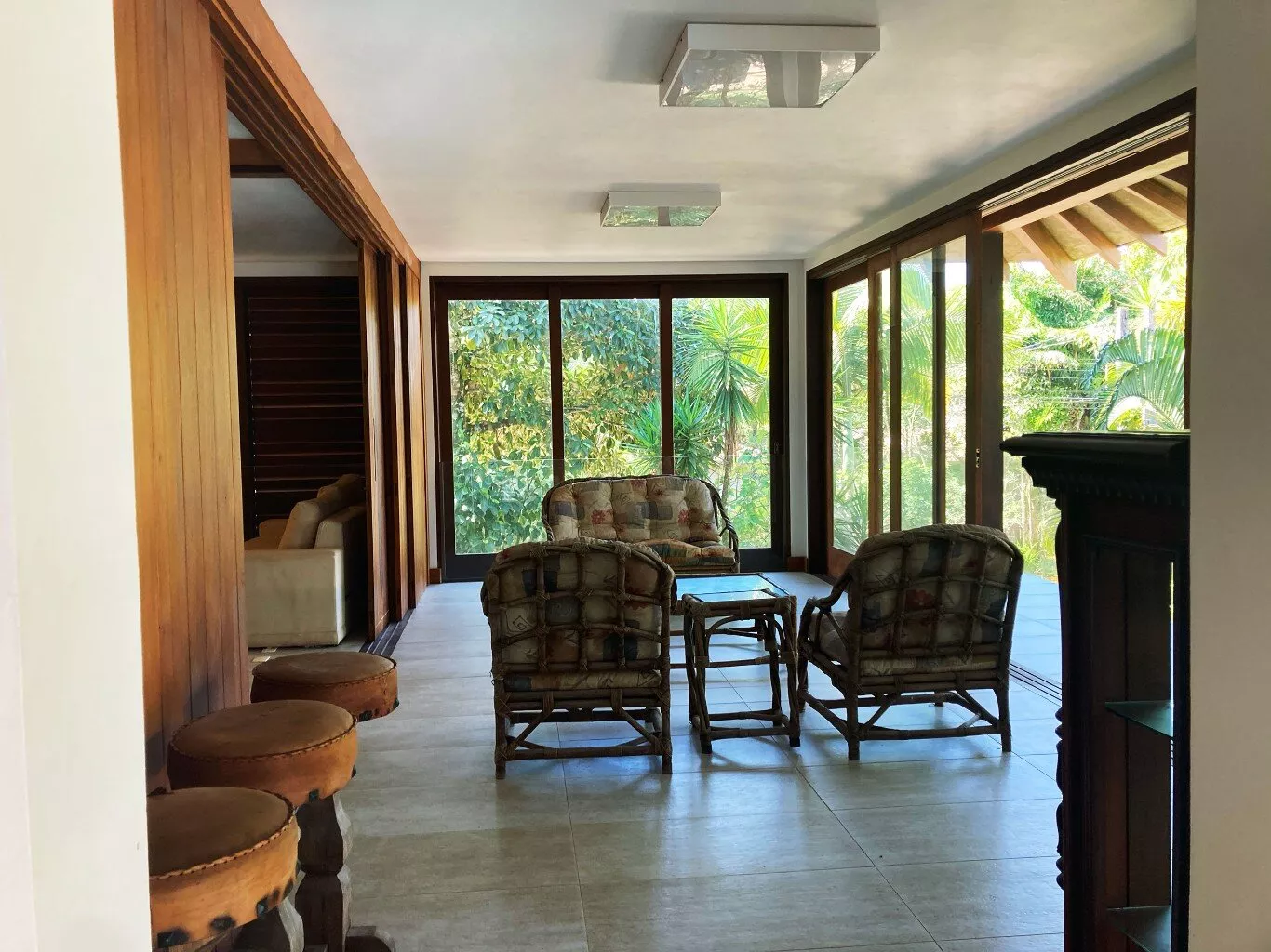 A área externa é um verdadeiro paraíso, com uma piscina cercada por um jardim exuberante, onde a tranquilidade e a beleza da vegetação local proporcionam um clima relaxante e único. Seja para momentos de descanso ou para aproveitar a companhia de amigos, este é o cenário ideal para dias inesquecíveis.