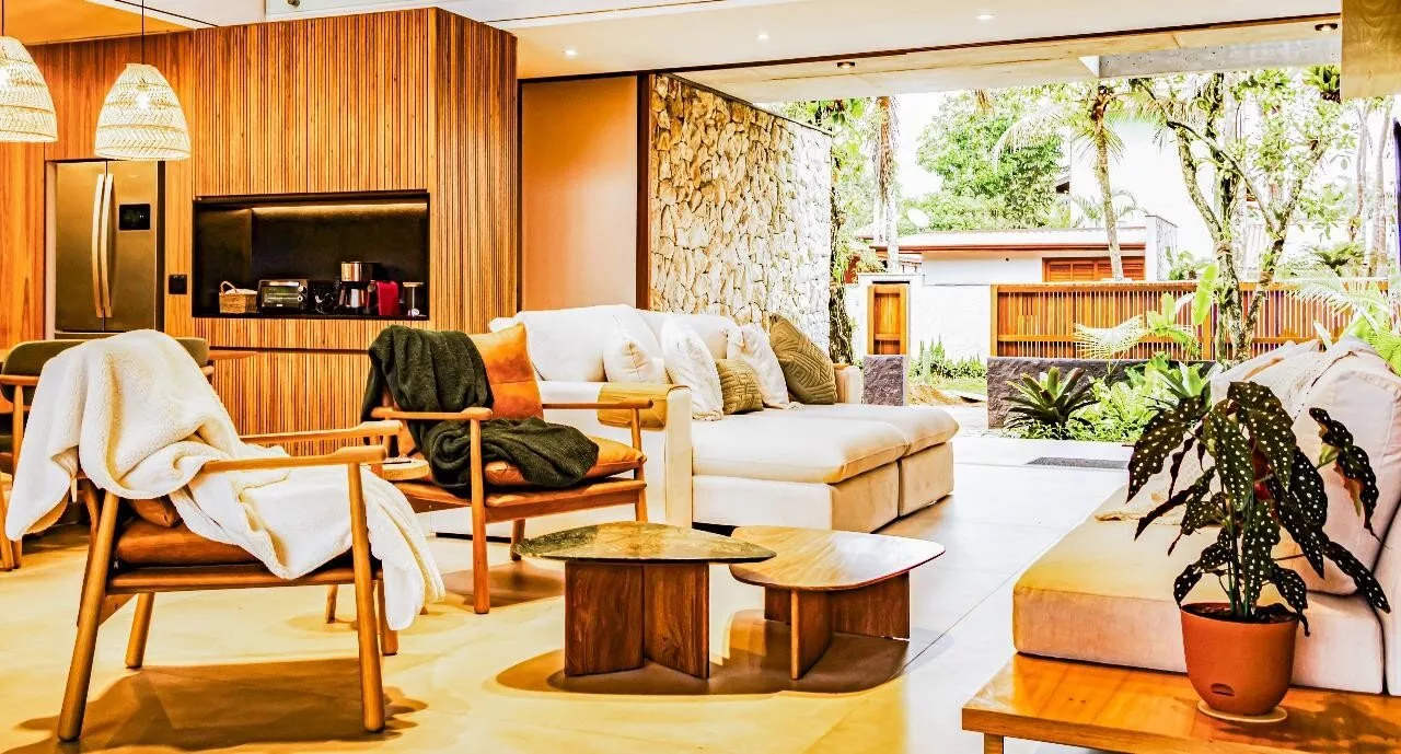 Assinada pela renomada Pitta Arquitetura 🖋️, cada ambiente foi pensado para surpreender. Aqui, design contemporâneo e elegância se encontram com o cenário exuberante da Mata Atlântica 🌿, criando um equilíbrio perfeito entre conforto moderno e o clima descontraído de Itamambuca.