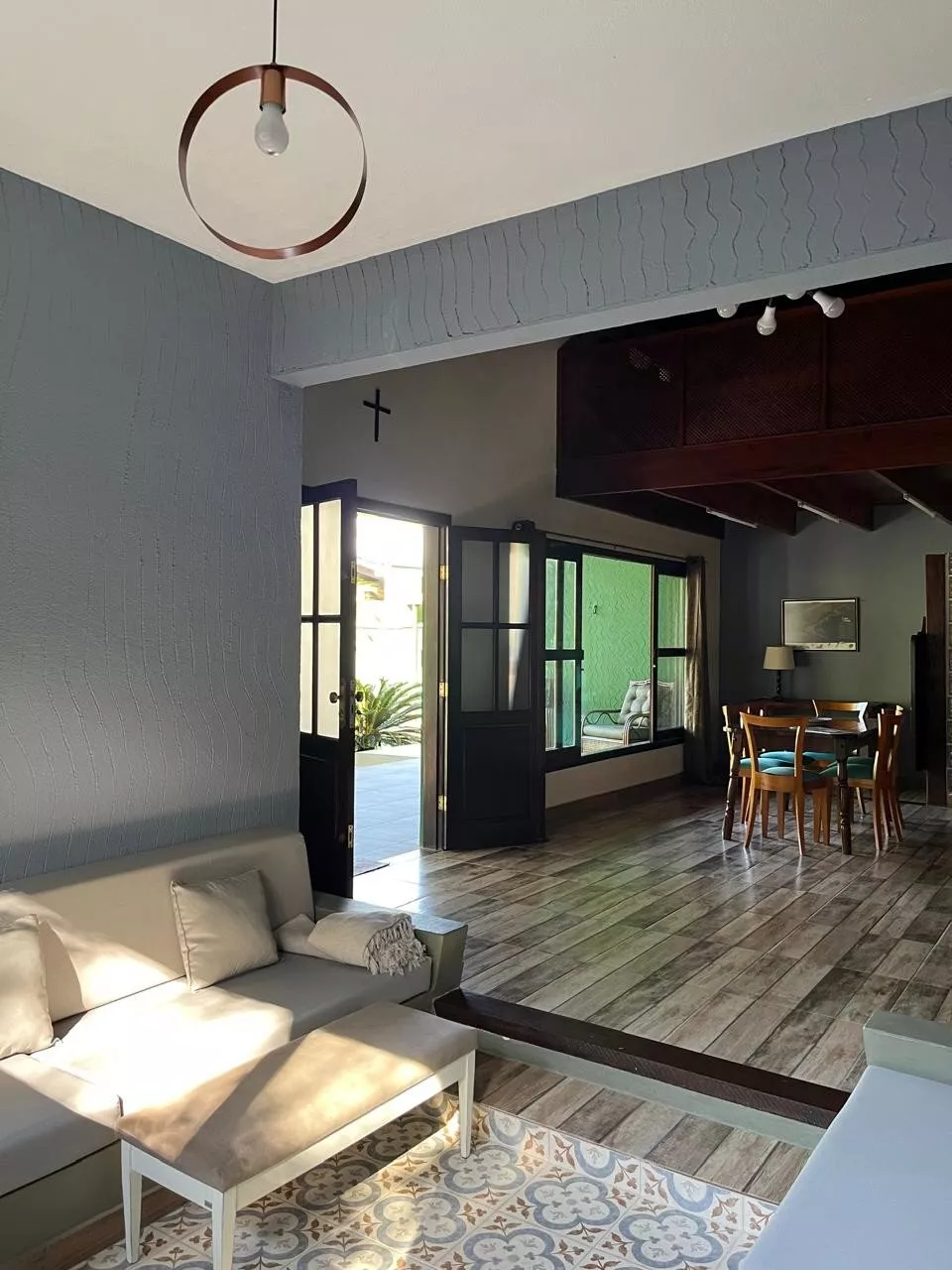 Desfrute de momentos de lazer na área externa, que conta com churrasqueira e forno de pizza, além de uma jacuzzi para relaxar após um dia de praia. A sala e a cozinha são integradas, proporcionando um espaço acolhedor para reunir a família e amigos.