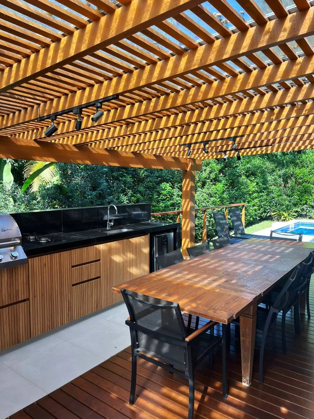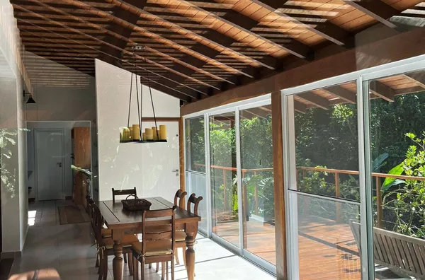 A área social é um convite ao convívio: cozinha, sala e varanda totalmente integradas à natureza criam um ambiente acolhedor e relaxante. A casa ainda conta com uma deliciosa piscina, além de uma área gourmet perfeita para momentos especiais com família e amigos.