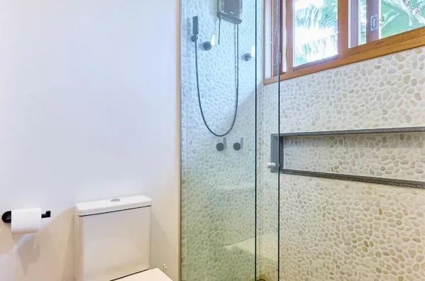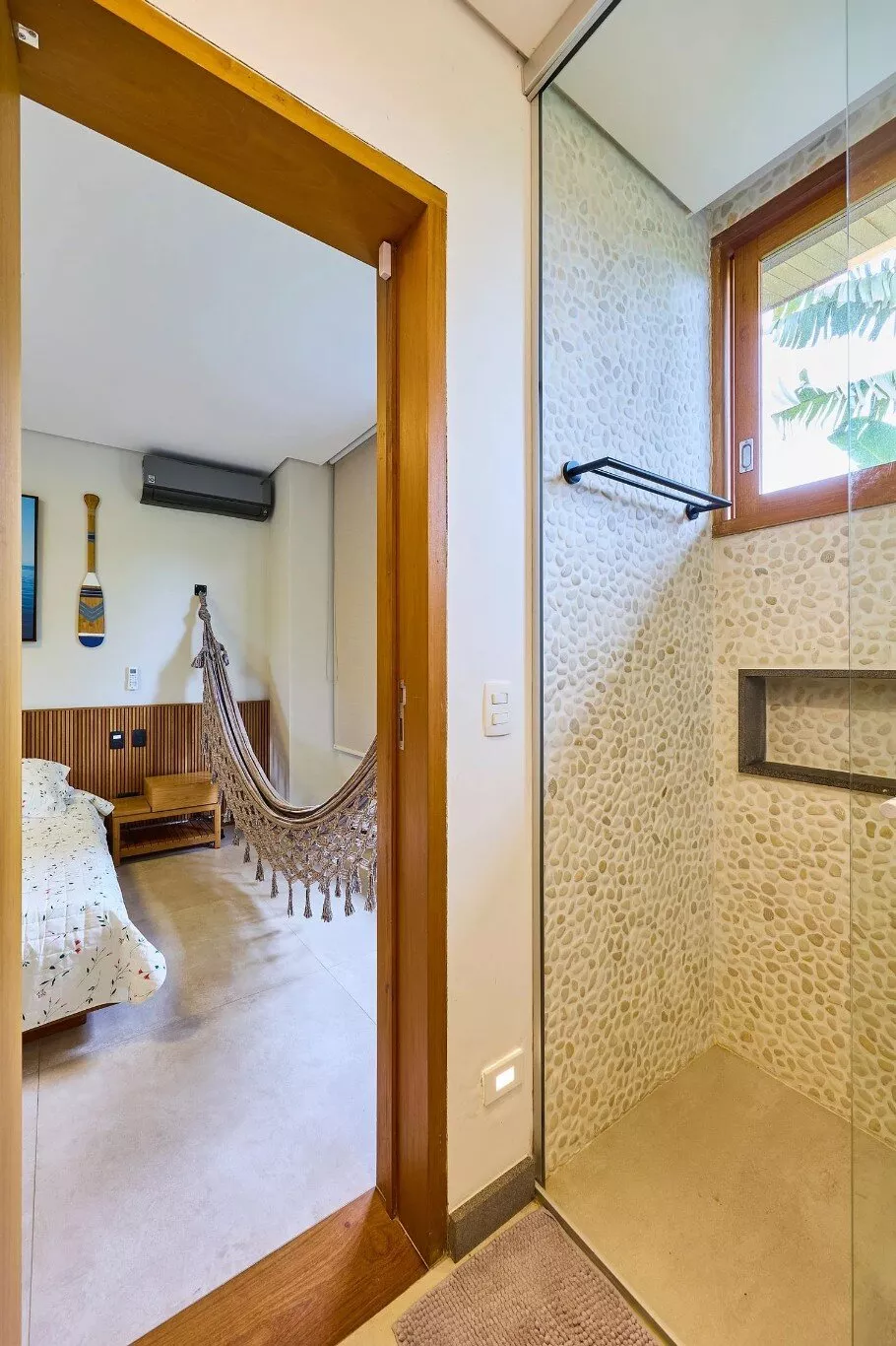 Espaços agradáveis para relaxar e se refrescar após a praia.