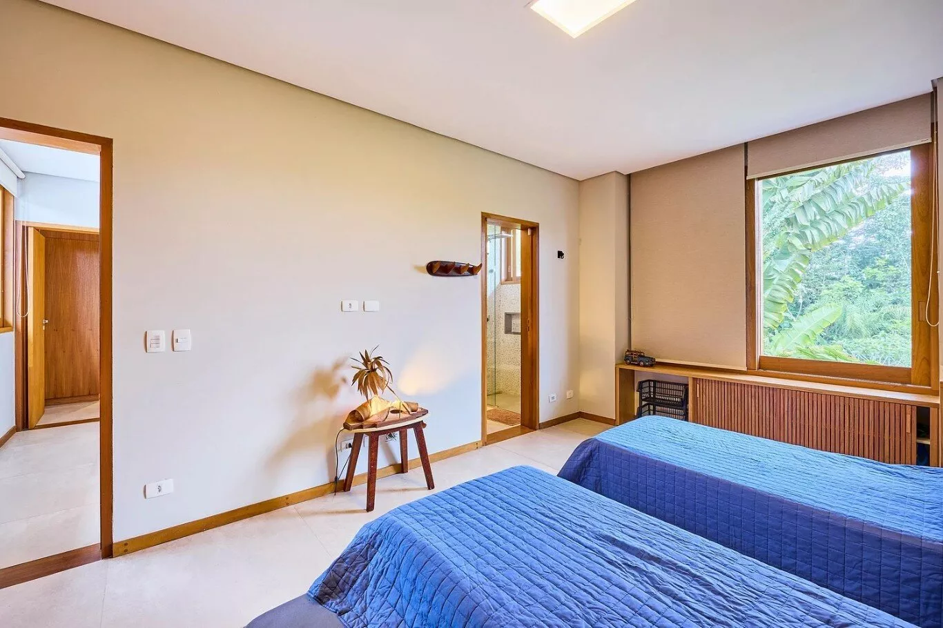 • Suíte 4: Cama Queen + 1 cama auxiliar, ar-condicionado (acomoda 3 pessoas).