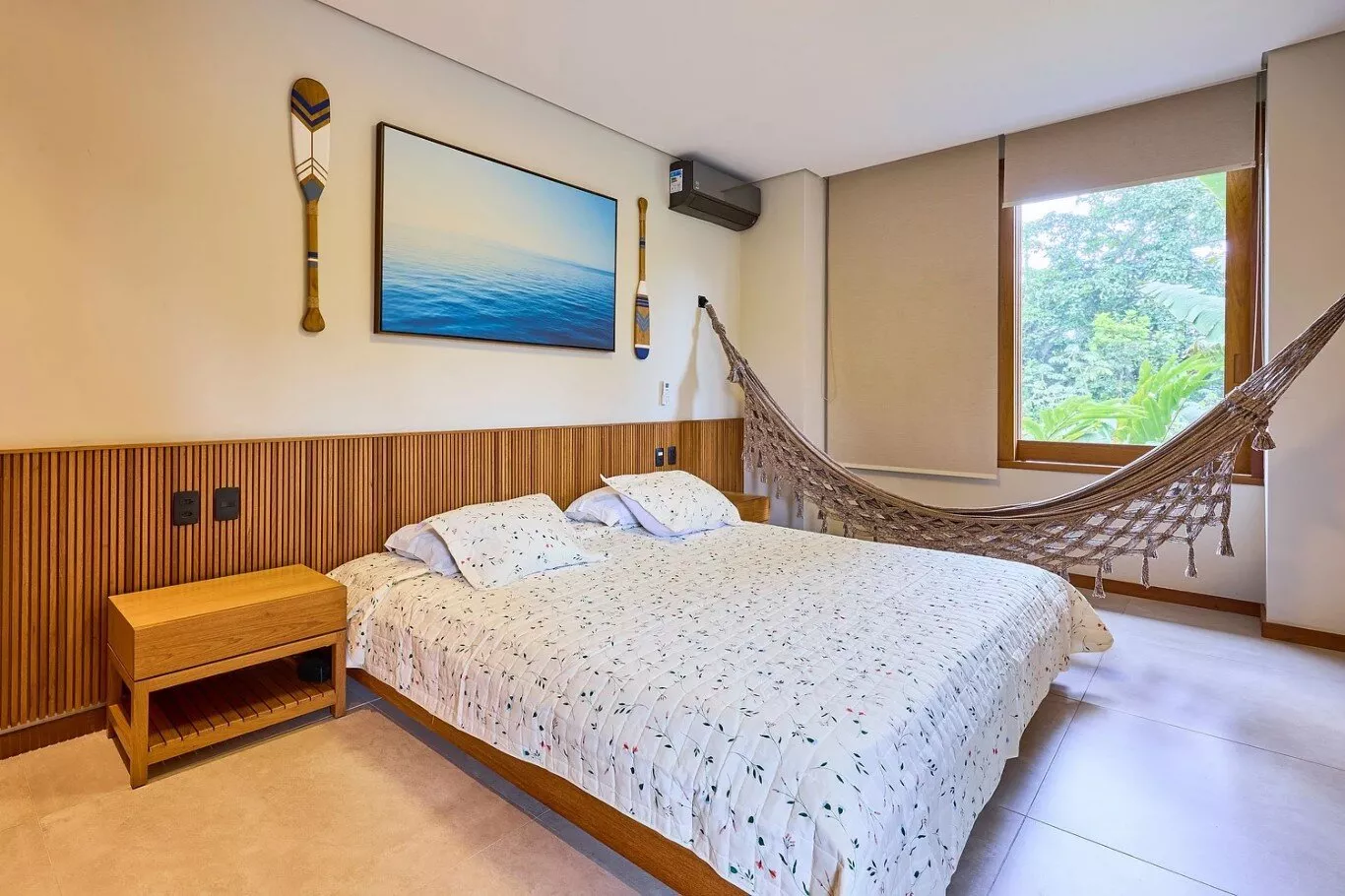 • Suíte 1: Cama Super King, ar-condicionado (acomoda 2 pessoas).