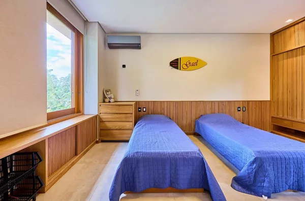 Com design contemporâneo e ambientes amplos, a casa acomoda até 14 pessoas com total conforto em 5 suítes completas, todas equipadas com ar-condicionado. Um diferencial ideal para quem valoriza privacidade e praticidade, mesmo com a casa cheia.