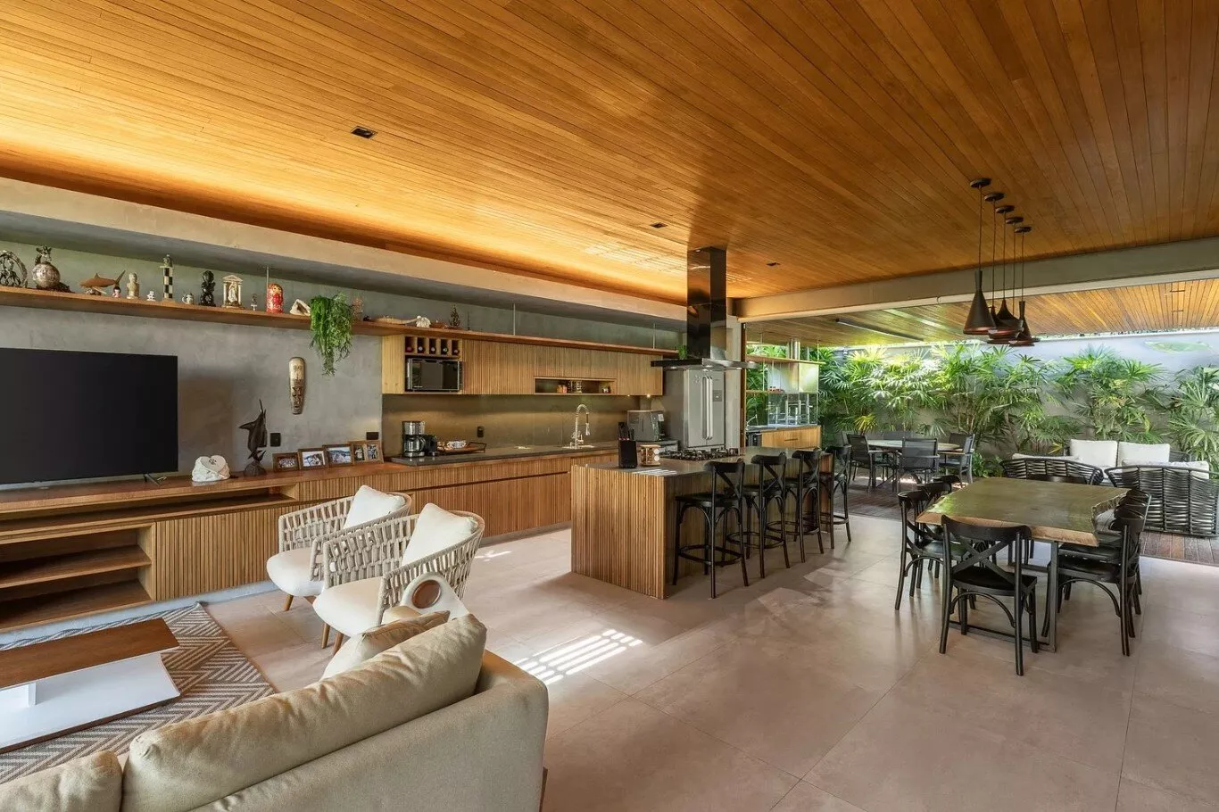 Com Smart TV (Netflix, YouTube, Spotify) e acesso direto à cozinha e área externa.