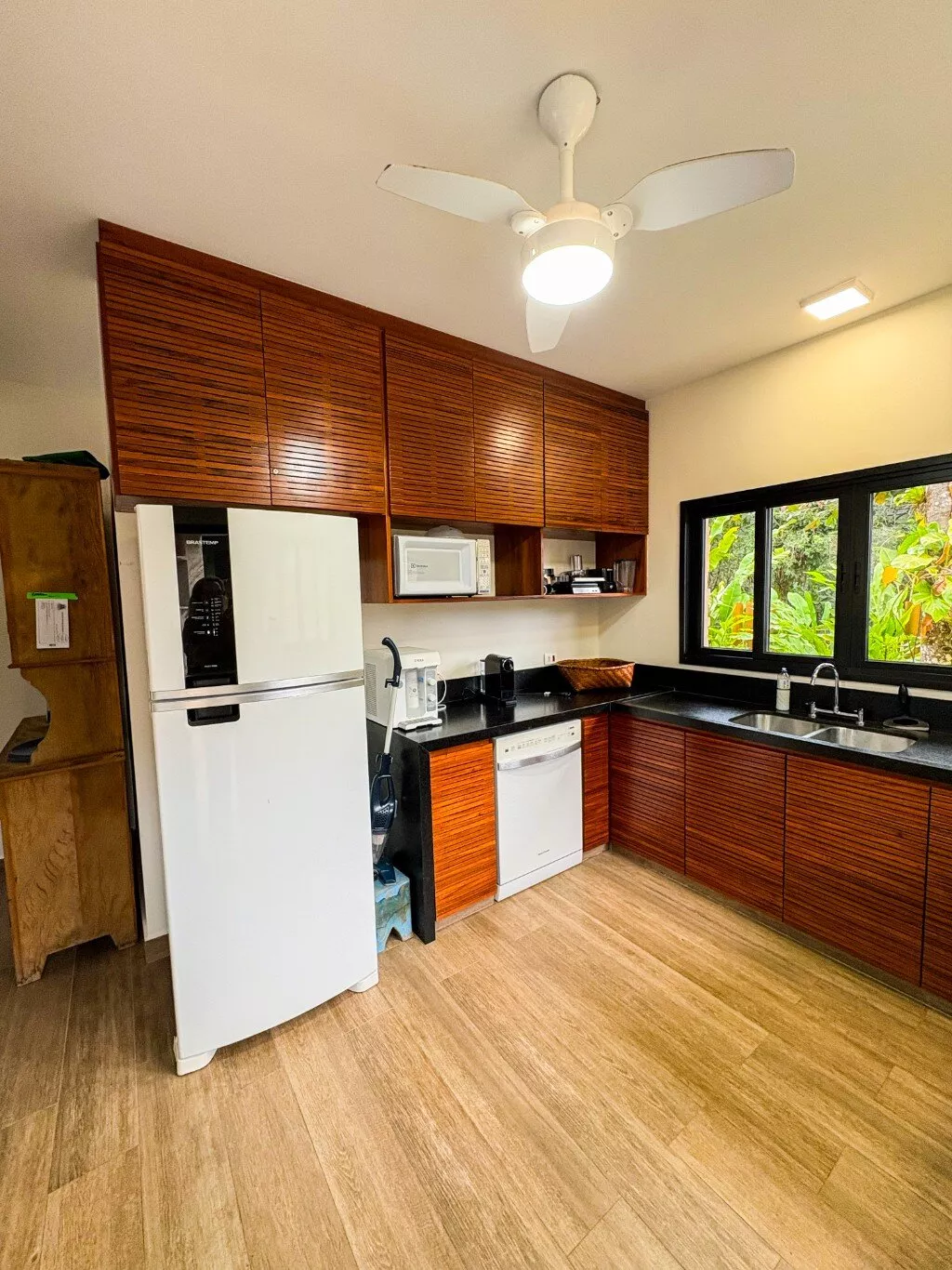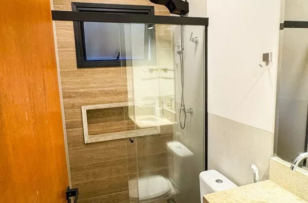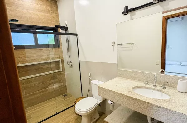 São 3 suítes internas, todas climatizadas e espaçosas. Há ainda uma quarta suíte externa, perfeita para receber convidados com mais privacidade.