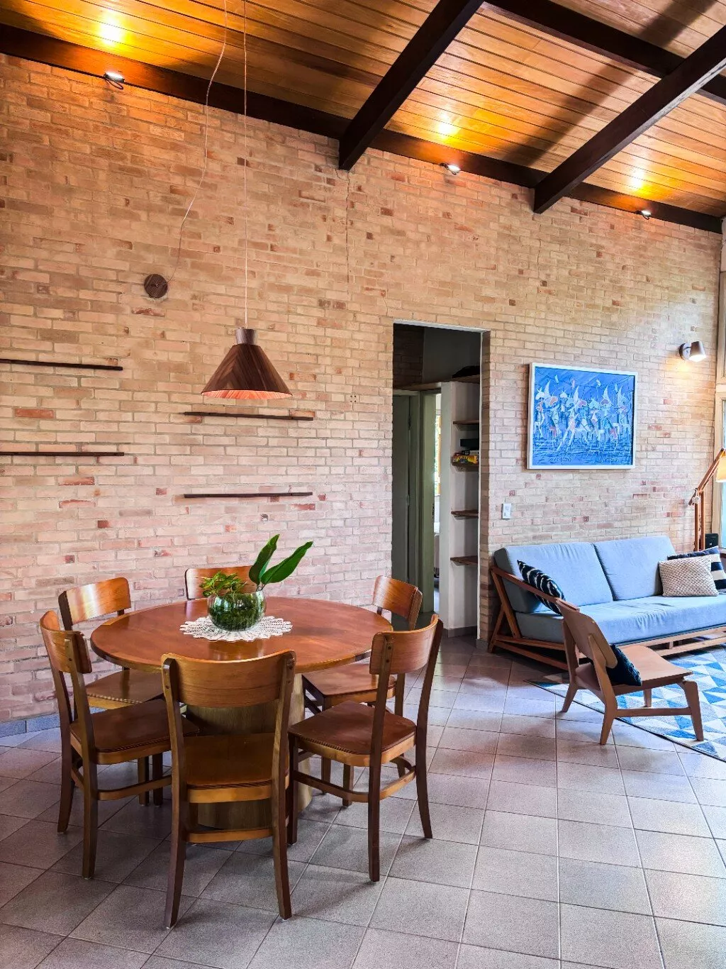 Casa térrea de estilo único, localizada no lado par, em uma região reservada e tranquila. A construção em tijolo à vista, somada às esquadrias em madeira natural, confere elegância, solidez e um charme atemporal ao imóvel.