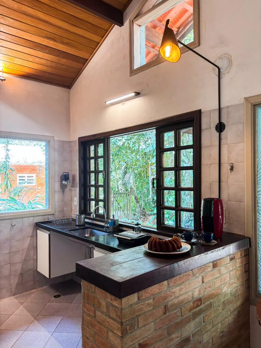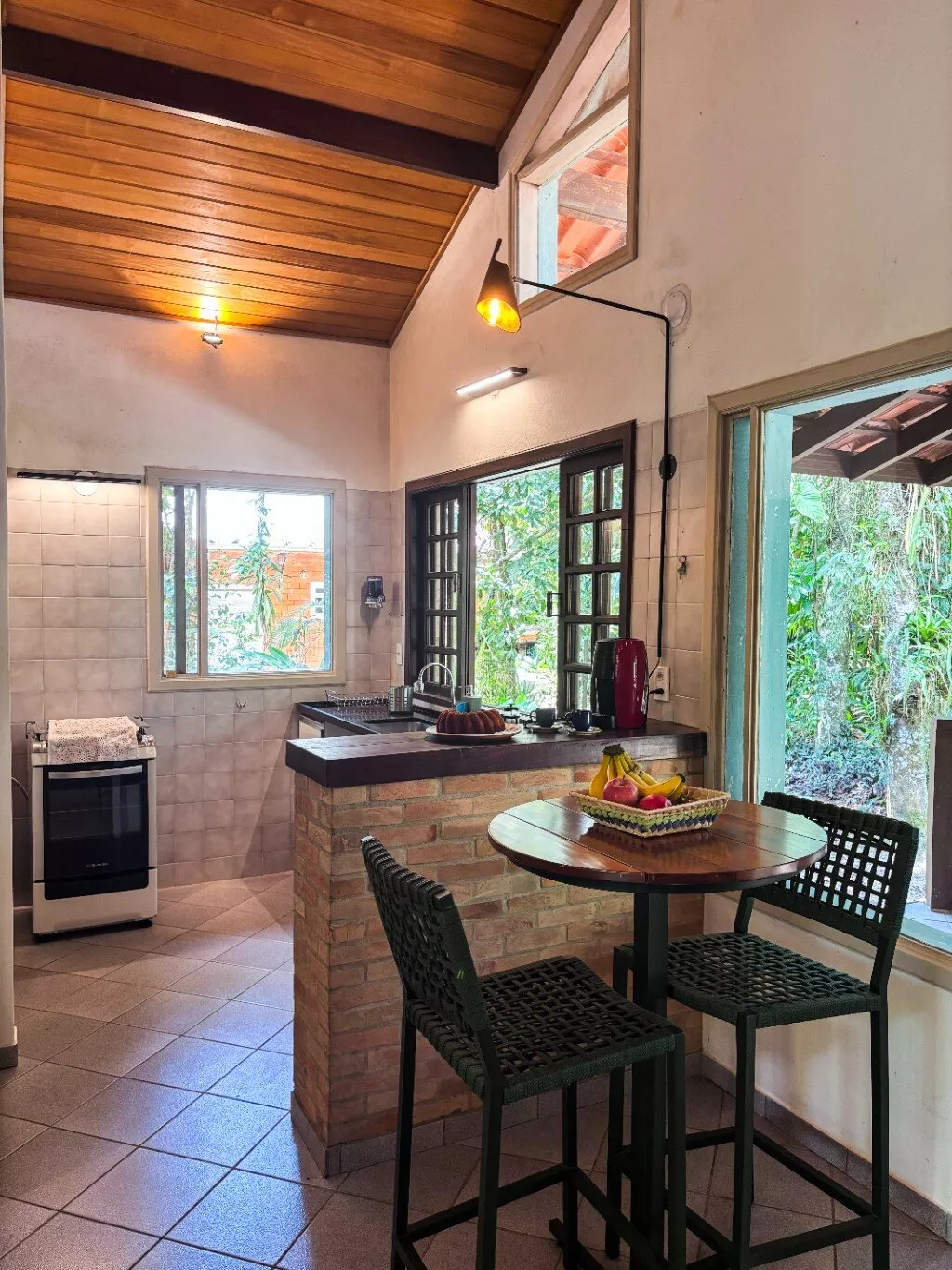 Com 3 dormitórios e 2 banheiros, a casa oferece praticidade e conforto no dia a dia. As amplas janelas de vidro permitem que a iluminação natural e a vista para o verde façam parte da rotina, criando um ambiente integrado à natureza.