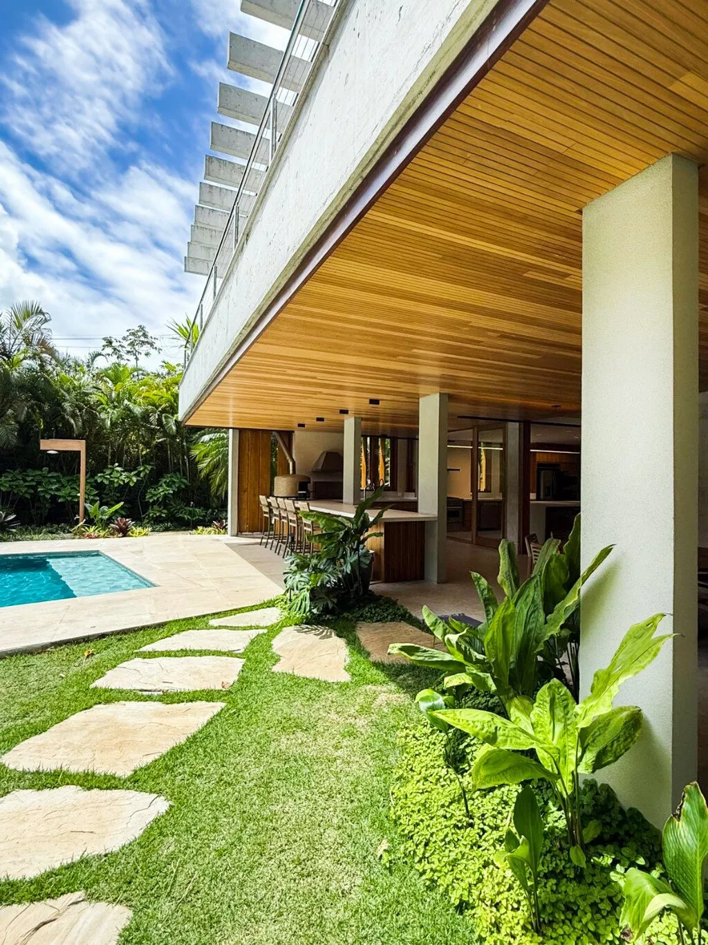 A apenas 360 metros da praia. Entre o mar e a Mata Atlântica, esta casa oferece o equilíbrio ideal entre conforto, elegância e o estilo de vida único de Itamambuca. Construída em três terrenos integrados, totalizando 1.500 m², ela se destaca pelos espaços amplos, bem iluminados e integrados à natureza.