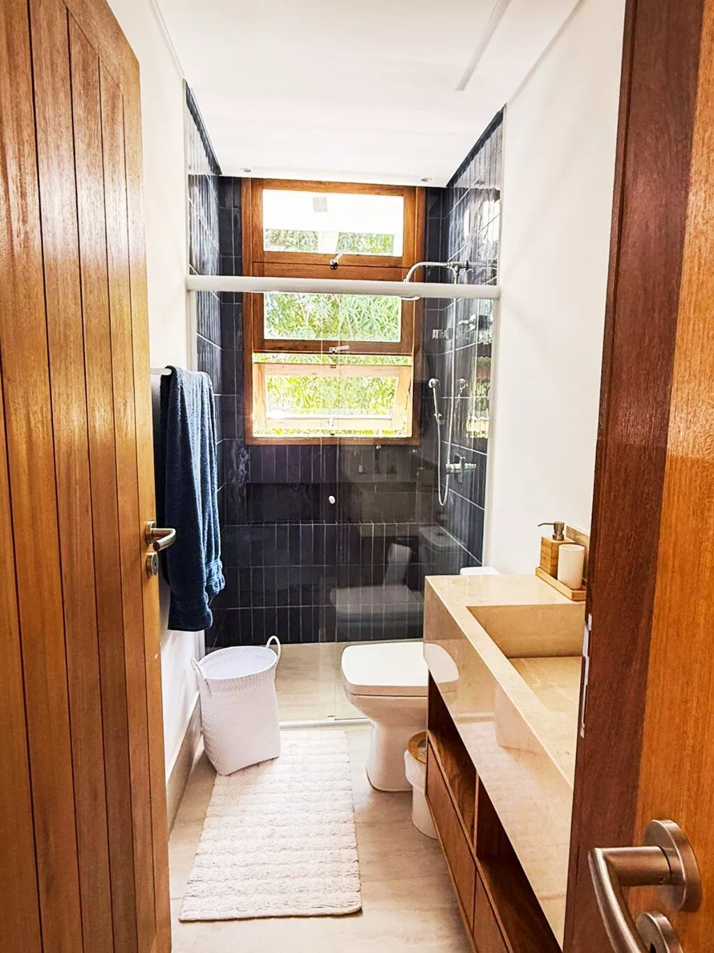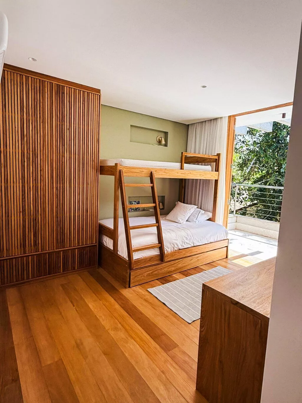 São 4 suítes climatizadas, sendo uma externa, com decoração elegante e atmosfera leve. Suíte 1: cama de casal super king; Suíte 2: 1 beliche, 1 cama auxiliar de solteiro; Suíte 3: 1 beliche, 1 cama auxiliar de solteiro; Suíte 4 (externa): cama de casal queen.
