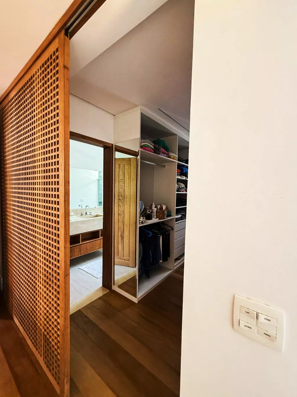 Os ambientes amplos e integrados valorizam a luminosidade natural e se abrem para um jardim exuberante, onde o lazer ganha destaque com piscina climatizada com cascata, sauna e academia equipada.