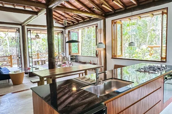 Rodeada por um paisagismo tropical lindíssimo, a casa combina modernidade, integração total dos ambientes e aquele charme despretensioso que só Itamambuca tem. A cozinha é completa e super equipada, incluindo máquina de lavar louça, perfeita para quem gosta de cozinhar sem perder tempo com tarefas.