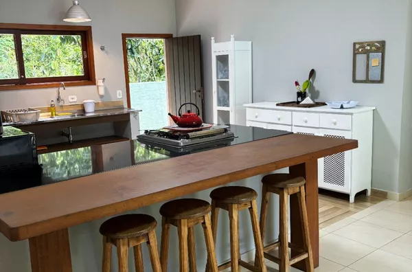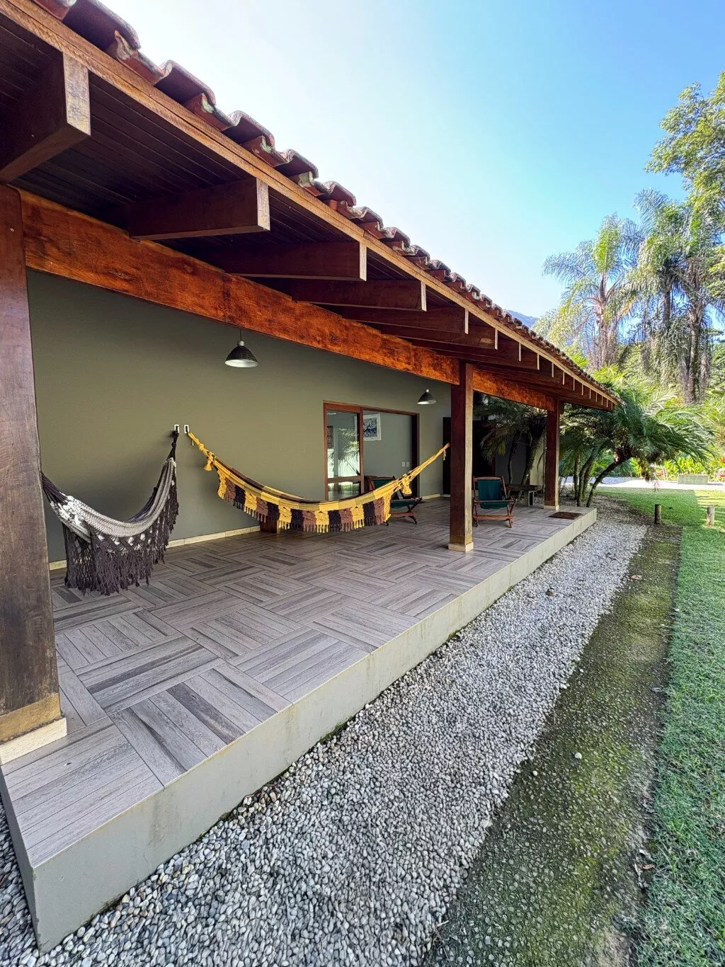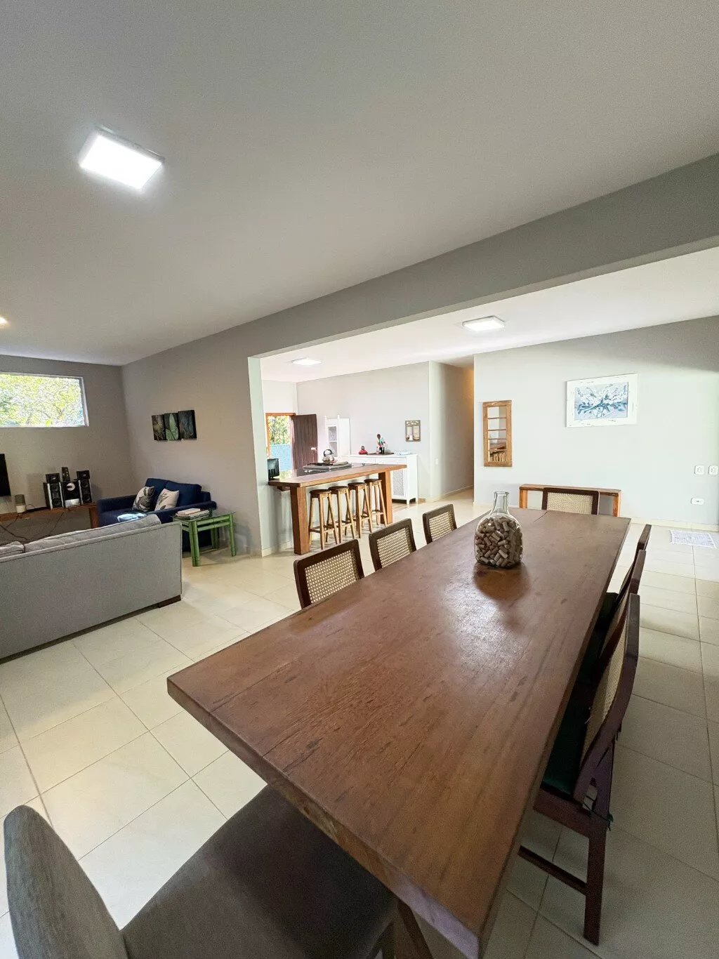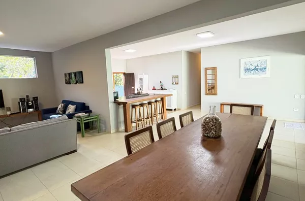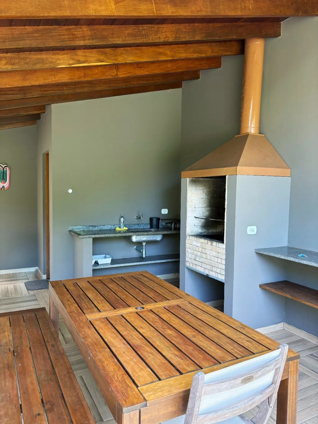 Com pé-direito alto que garante ambientes arejados e iluminados, a casa combina charme rústico e funcionalidade. O gramado espaçoso é ideal para momentos de lazer ao ar livre, e a churrasqueira completa convida a confraternizações inesquecíveis entre amigos e família.