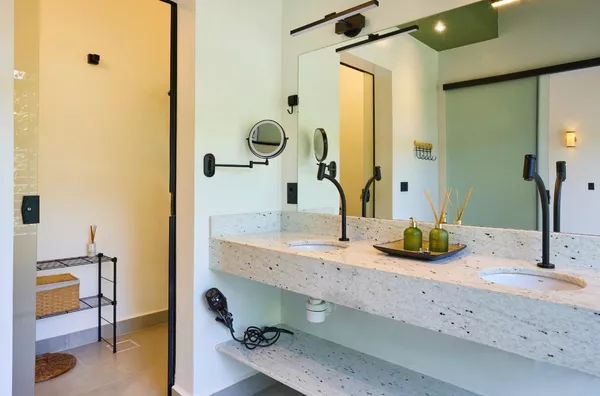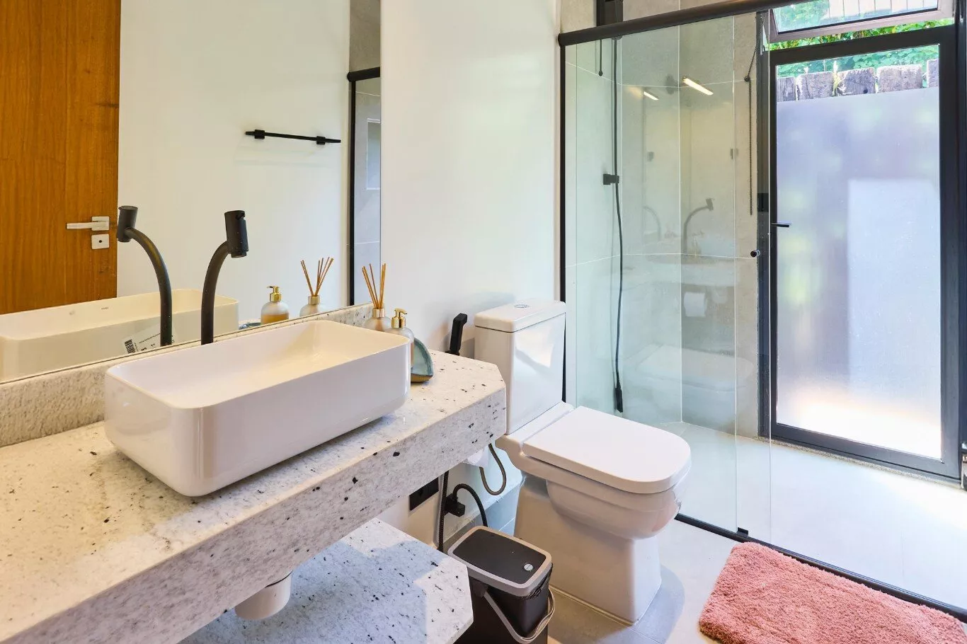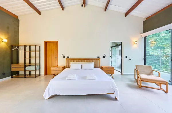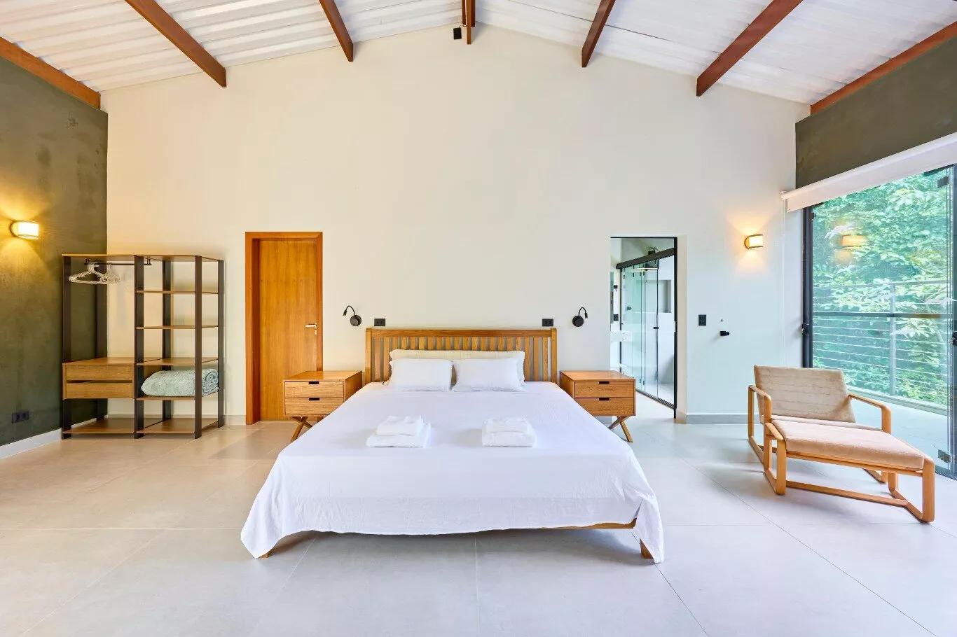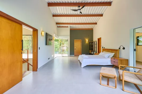 São 3 suítes espaçosas com ar-condicionado, pensadas para o descanso verdadeiro. A suíte master, com varanda privativa voltada para a natureza, oferece um despertar tranquilo, ao som dos pássaros e com a mata como cenário constante.