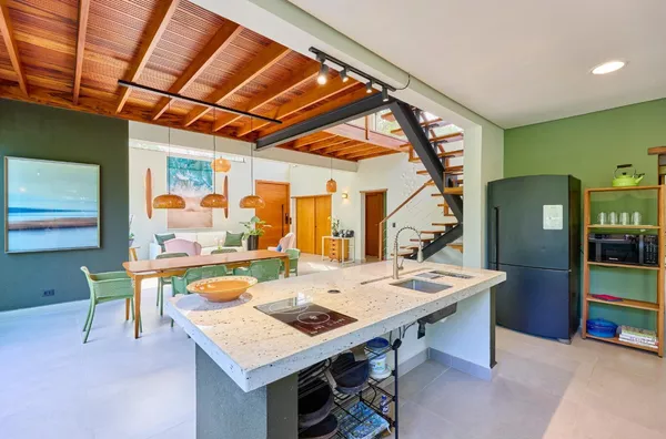 A casa conta ainda com lavanderia equipada com máquina de lavar e secar, trazendo praticidade ao dia a dia e permitindo que a experiência seja leve do começo ao fim.