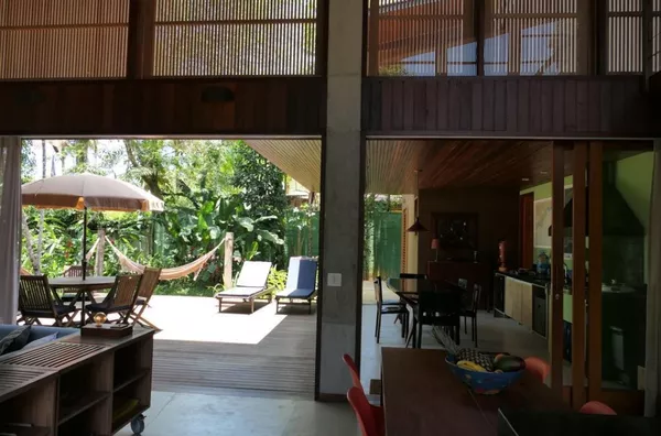 Casa de alto padrão em condomínio preservado, com ruas de terra e sem iluminação de poste. Acomoda até 6 pessoas, Uma beleza para ver as estrelas e sentir -se integrado à Mata Atlântica, a 300 metros da praia.