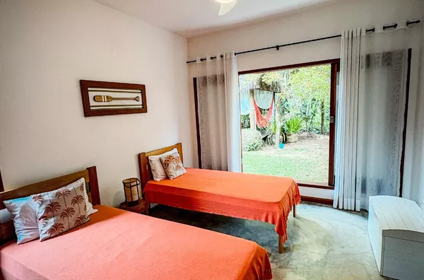 Rodeada por um jardim tropical cuidadosamente projetado, onde pássaros nativos circulam livremente, esta casa combina conforto, sofisticação e natureza em perfeita harmonia. Cada detalhe da decoração foi pensado para proporcionar momentos de descanso, relaxamento e bem-estar.