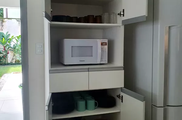 Distancia da Praia: 500 metros, acomoda até 10 pessoas. Casa ampla, arejada, extremamente limpa, com todos os utensílios necessários para a estadia, cadeiras de praia, guarda-sóis, cooler... Casa térrea com três suítes com ar condicionado e um quarto com ventilador de teto. Sala de estar e jantar com ventiladores de teto. Esse ambiente é adjacente à varanda que fica à frente da churrasqueira. Cozinha bem equipada: panelas, louças de café e de jantar, talheres, travessas, copos, taças e eletrodomésticos. Ampla área externa com jardins e garagem para até três carros. Wi-Fi e TV a cabo.