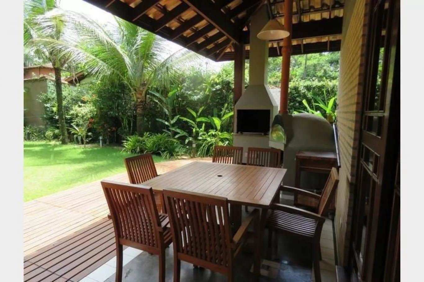 Casa com 3 quartos, sendo 1 suíte, 2 banheiros, área gourmet com churrasqueira e forno de pizza. aproximadamente 50 metros da praia. acomoda até 8 pessoas.