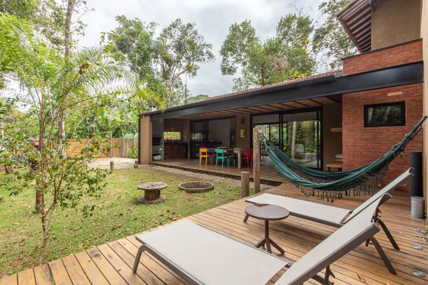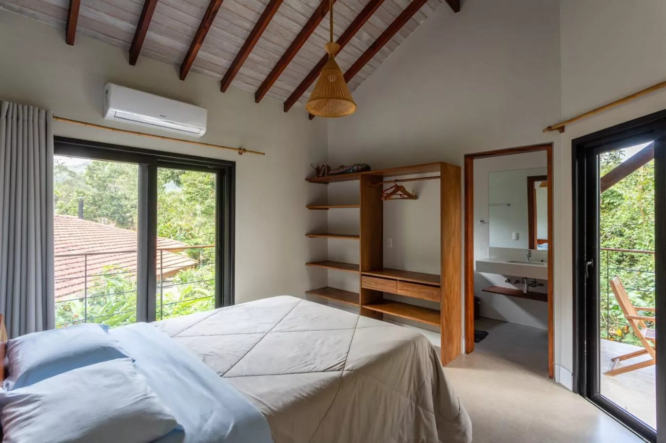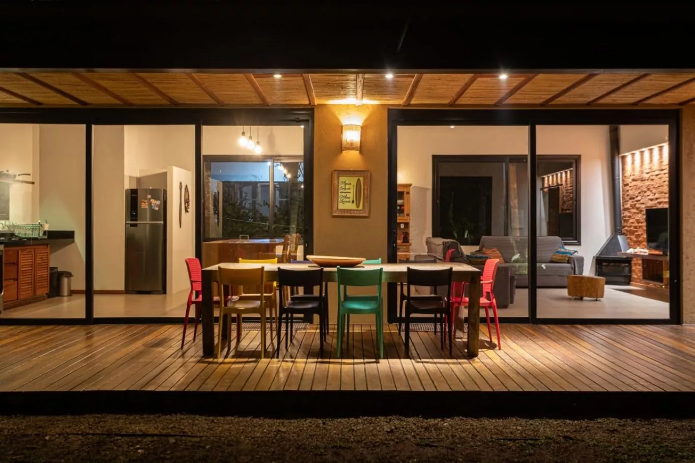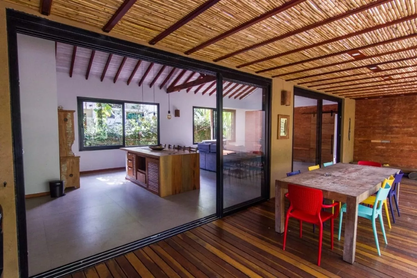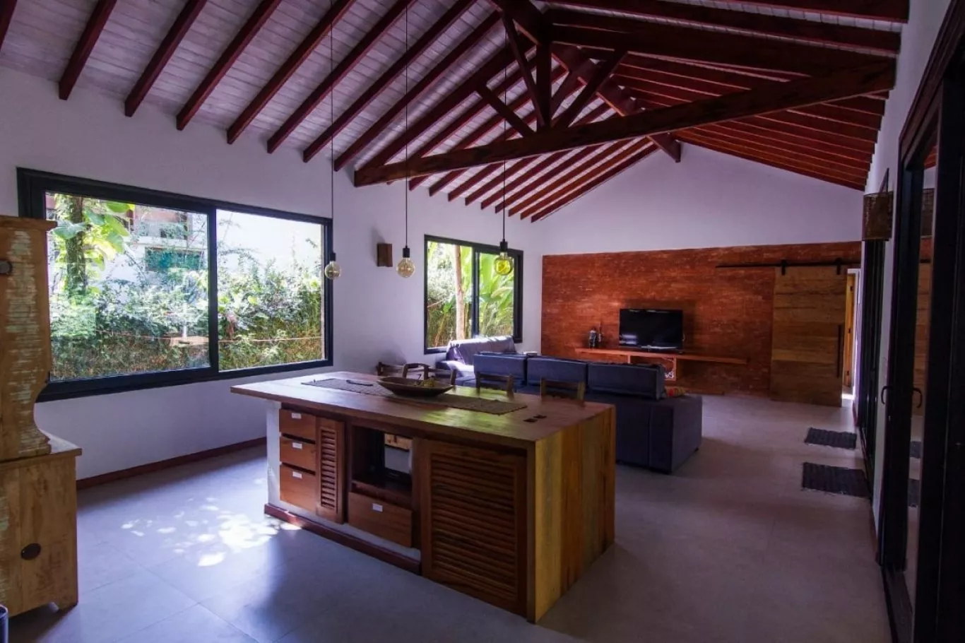 Distância do mar: 300 metros capacidade: 12 pessoas casa com 4 dormitórios, sendo 3 suítes com cama de casal, 1 suíte com duas camas de solteiro com 2 beliches e uma sala de tv/escritório com dois colchões. todos os dormitórios com tela, cortina black out e ar condicionado. um lavabo e um banheiro externo com chuveiro devido às grandes aberturas de portas e janelas, que além de deixarem os ambientes super frescos e naturalmente claros, integram a parte interior da casa com o restante do terreno que possui um paisagismo local.