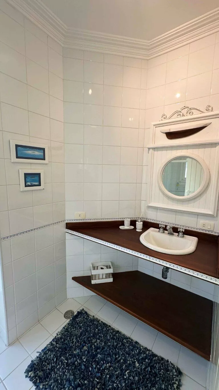 A área social é completa, com duas cozinhas equipadas e independentes, além de lavanderia com lava e seca e secadora — praticidade total para estadias mais longas.