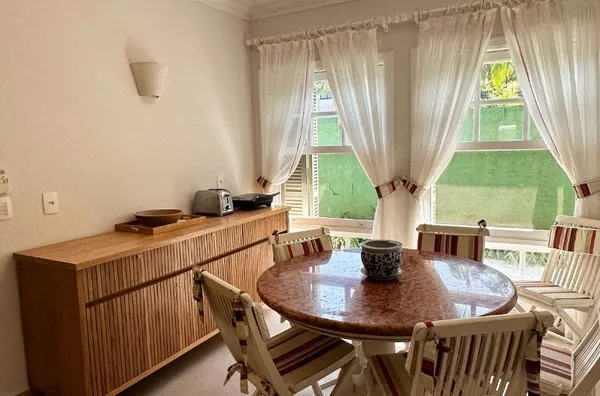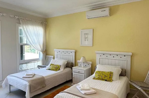 Distância do mar: 300 metros essa encantadora residência estilo provençal, é um verdadeiro convite para relaxar. cada detalhe foi pensado no bem estar dos seus hospedes. a casa é toda voltada para um imenso jardim, com piscina e área gourmet. composta por 5 suítes e mais casa de hospedes com 2 suítes + ampla sala de estar, cozinha e área de serviço independentes. ar-condicionado em todos os ambientes distribuídos e ventiladores de teto em todos os ambientes incluindo as varandas abertas. sistema de aquecimento de água a gás com 3 sistemas independentes. toda a rede de água pressurizada por bomba de 1,5cv. 2 provedores independentes de internet por fibra ótica – sistema de redundância ambos com 120mb. sala de home theater com tv a cabo net com 128 canais full hd e tv de 65”. gerador de emergência de 13kva a gasolina. piscina aquecida grande. 2 cozinhas completas independentes, lavanderia com máquina de lavar (lava e seca) + secadora independente. muito bom gosto e aconchegante, iluminada e ensolarada, podemos dizer que é um verdadeiro clube