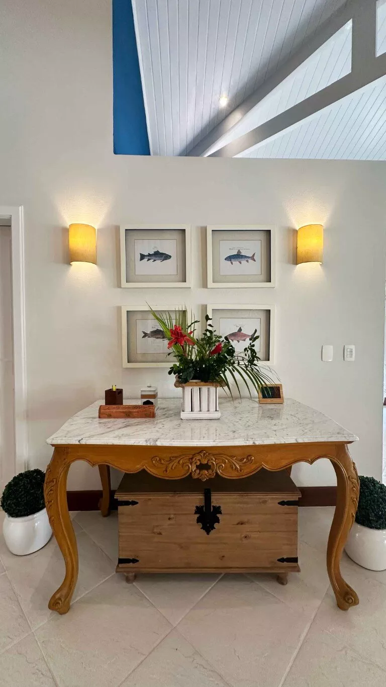 Para quem precisa se manter conectado, a casa dispõe de internet por fibra óptica com dois provedores independentes (120 MB cada), assegurando estabilidade total. A estrutura inclui ainda sala de home theater com TV de 65”, TV a cabo com 128 canais Full HD, além de gerador de energia de emergência.