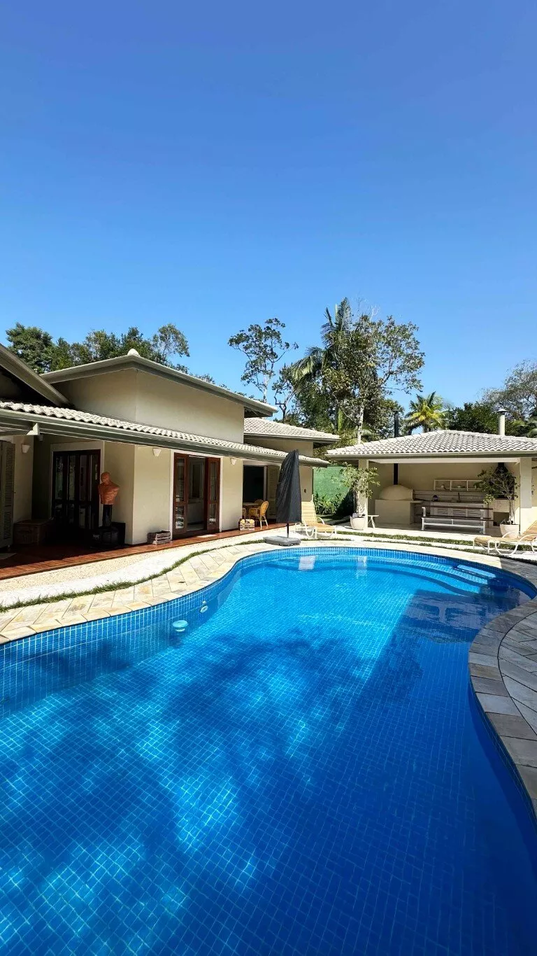 O imóvel principal conta com 5 suítes, além de uma casa de hóspedes independente, com 2 suítes, ampla sala de estar, cozinha e área de serviço próprias — ideal para acomodar todos com conforto e privacidade.