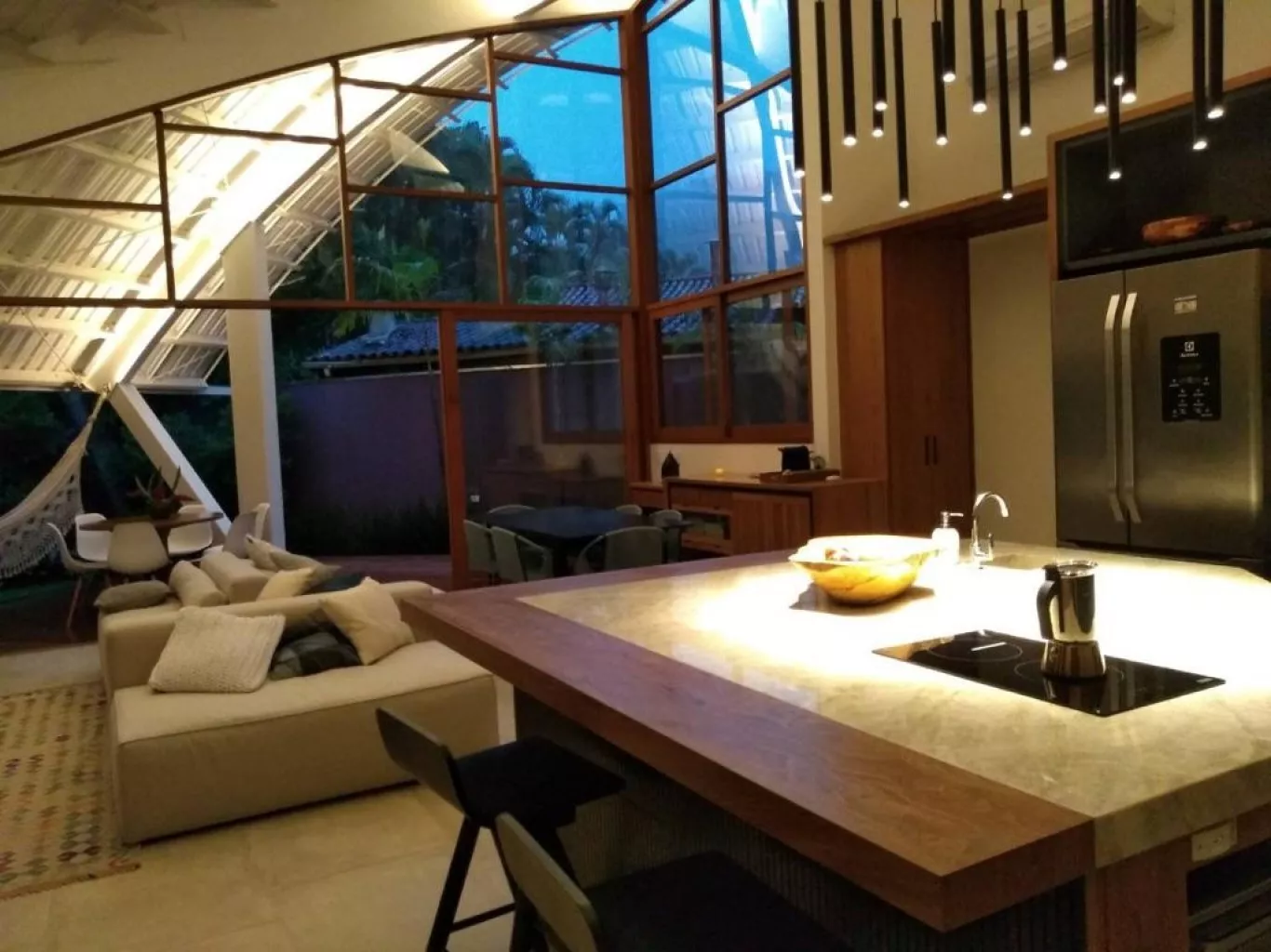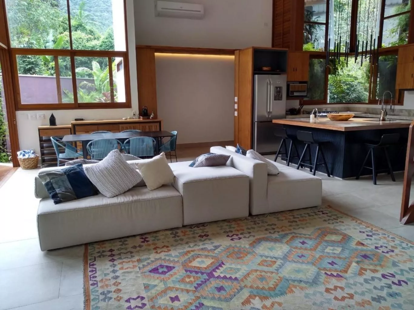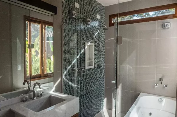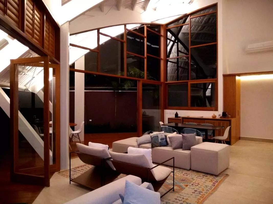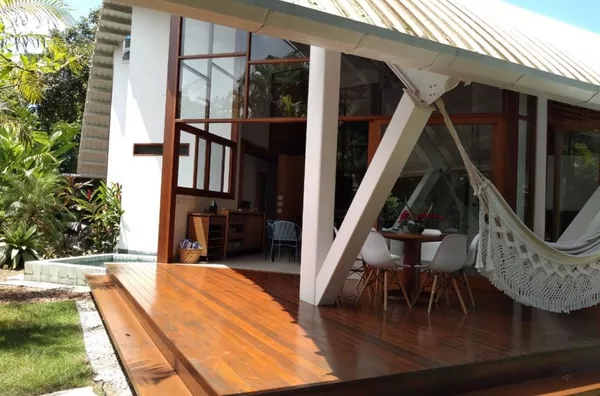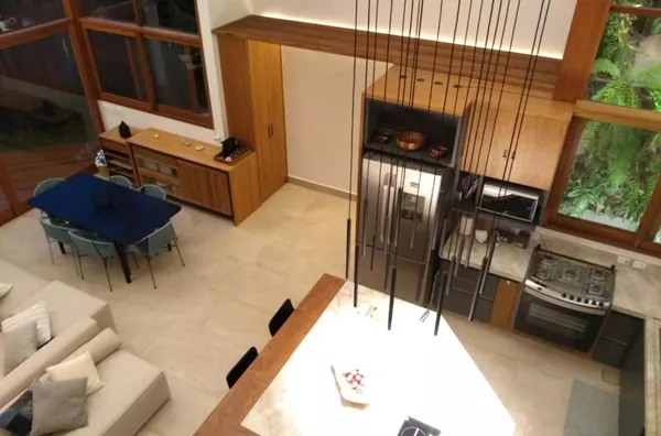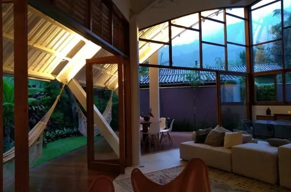 Casa alto padrão, rua par, acomoda até 8 pessoas. São 3 suítes, sendo 2 delas máster com banheira de hidromassagem, chuveiro duplo, closet. Terceira suíte no segundo andar, acesso por escada tipo Santos Dumont, Cozinha completa, churrasqueira a bafo weber. spa aquecido. Publicada na revista archdaily, https://www.archdaily.com.br/br/930410/casa-em-itamambuca-vidal-and-santanna. a casa tem um conceito de claridade e iluminação únicos, integrados com a mata atlântica. ar em todos os ambientes. cisterna 3 mil lts, 1 bike, wi.fi fibra 120 megas.