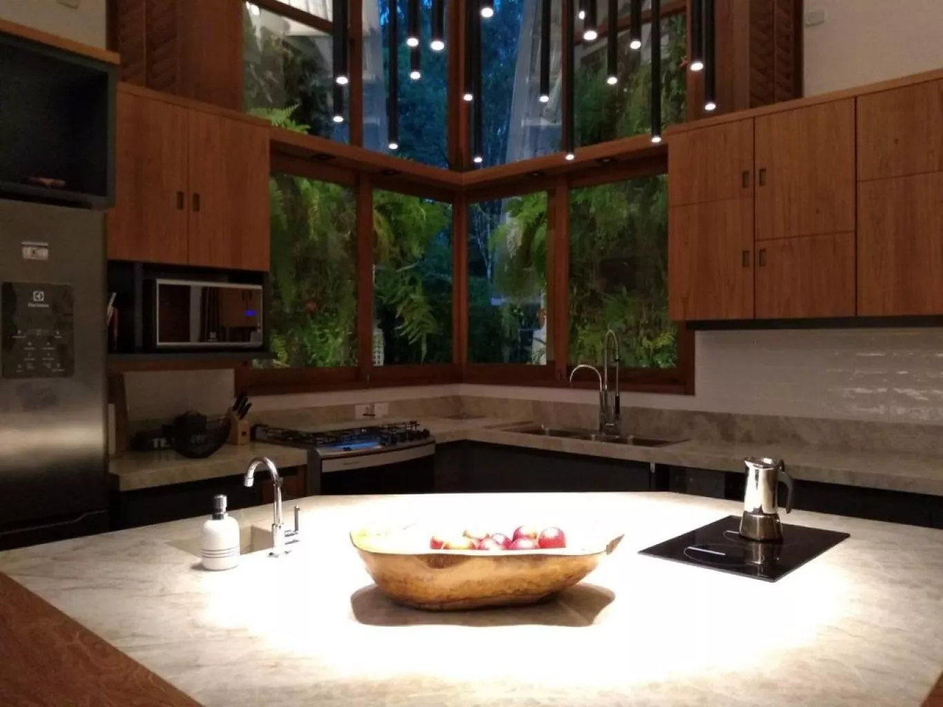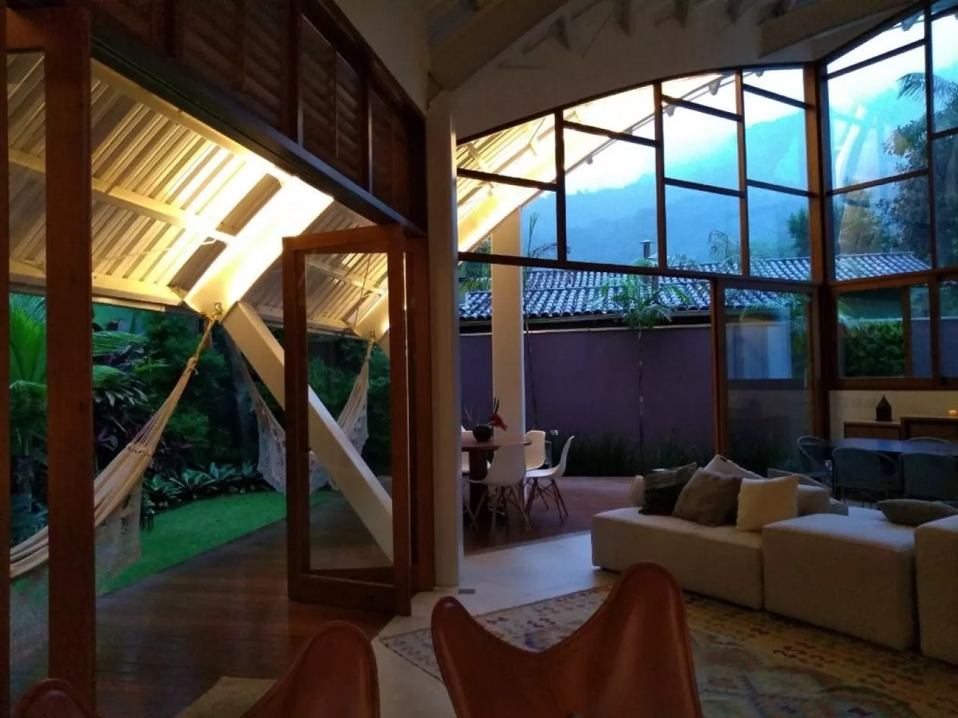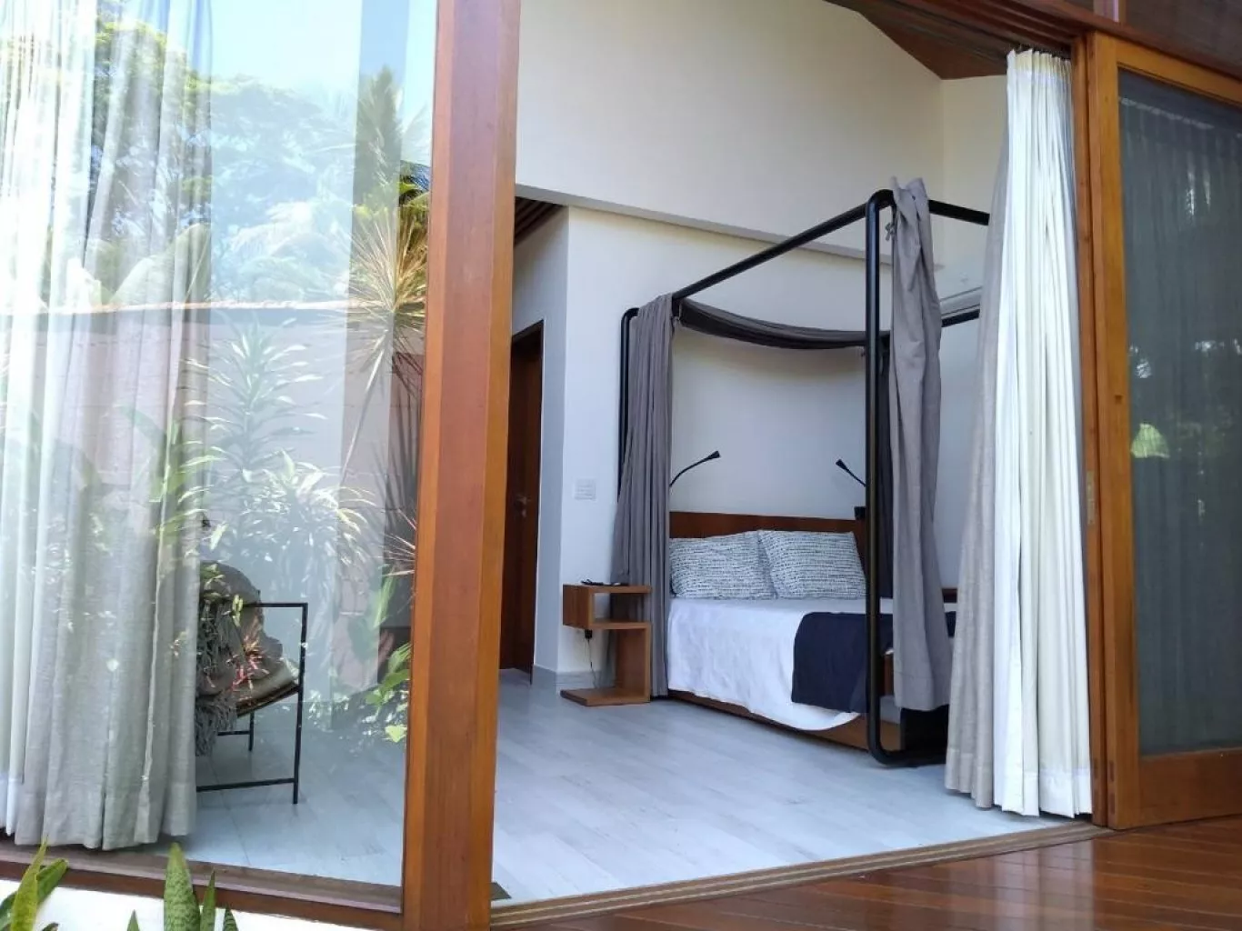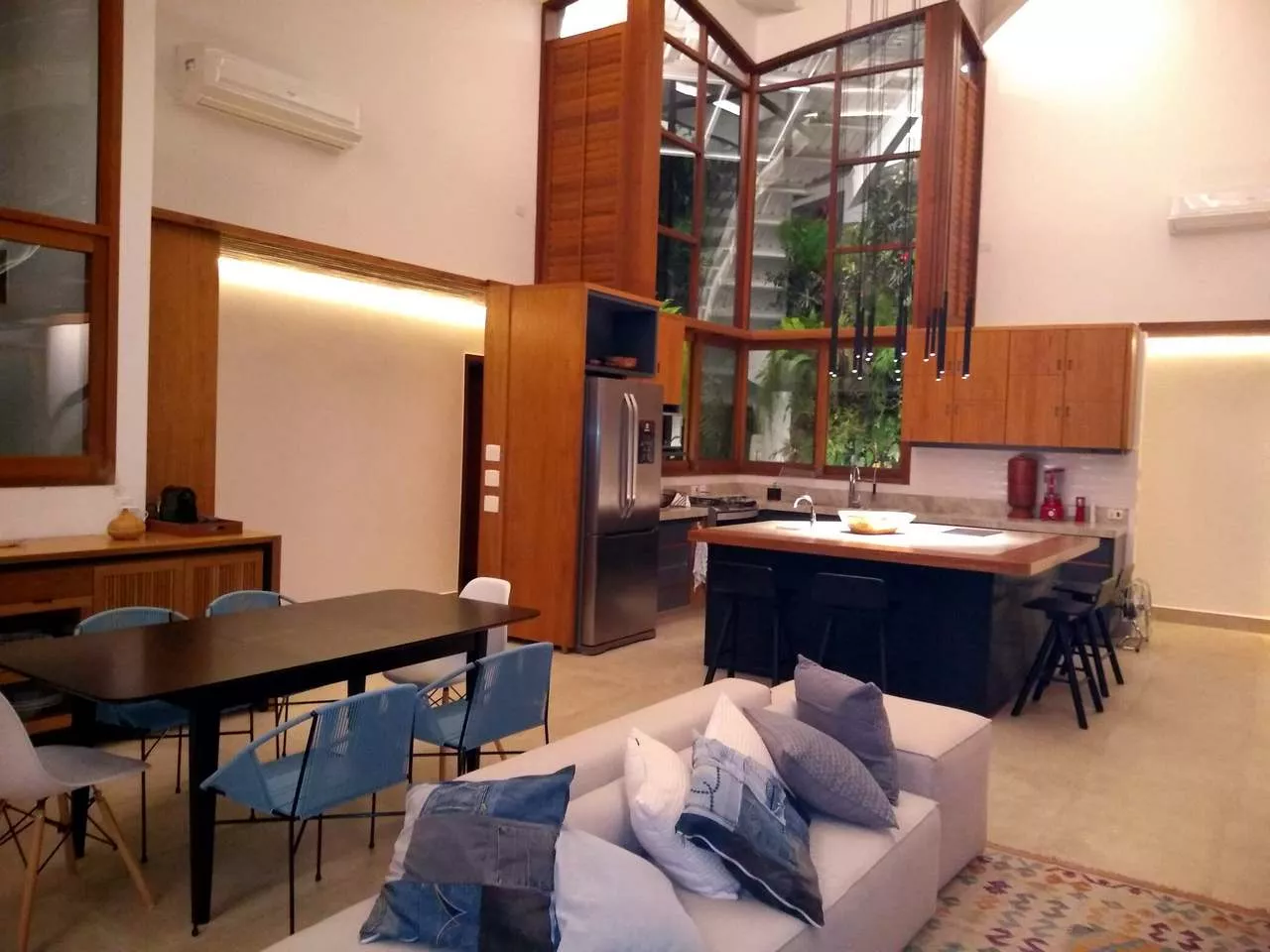 Casa alto padrão, rua par, acomoda até 8 pessoas. São 3 suítes, sendo 2 delas máster com banheira de hidromassagem, chuveiro duplo, closet. Terceira suíte no segundo andar, acesso por escada tipo Santos Dumont, Cozinha completa, churrasqueira a bafo weber. spa aquecido. Publicada na revista archdaily, https://www.archdaily.com.br/br/930410/casa-em-itamambuca-vidal-and-santanna. a casa tem um conceito de claridade e iluminação únicos, integrados com a mata atlântica. ar em todos os ambientes. cisterna 3 mil lts, 1 bike, wi.fi fibra 120 megas.