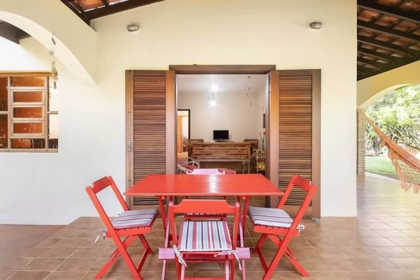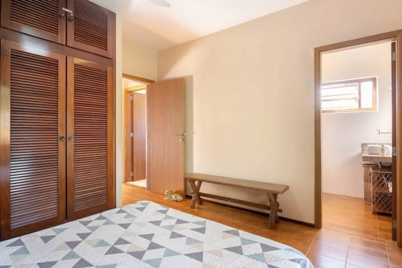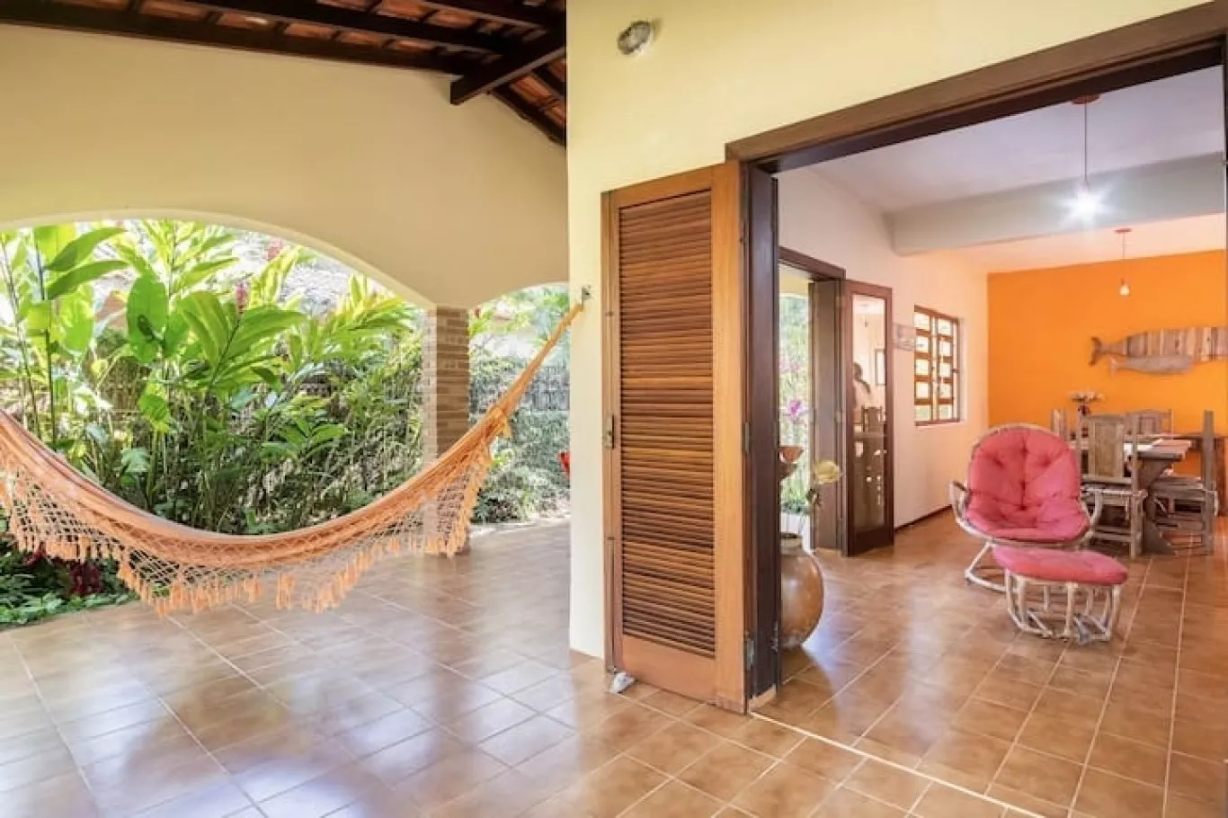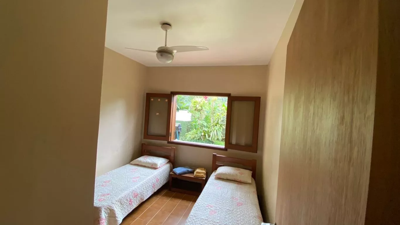 Distancia da praia: 100 metros, acomoda até 6 pessoas. Casa super ventilada e ensolarada, com um lindo jardim. São 3 quartos sendo 1 suíte , 1 quarto com uma cama de casal e em 2 quartos com duas camas de solteiro e uma cama infantil cada.