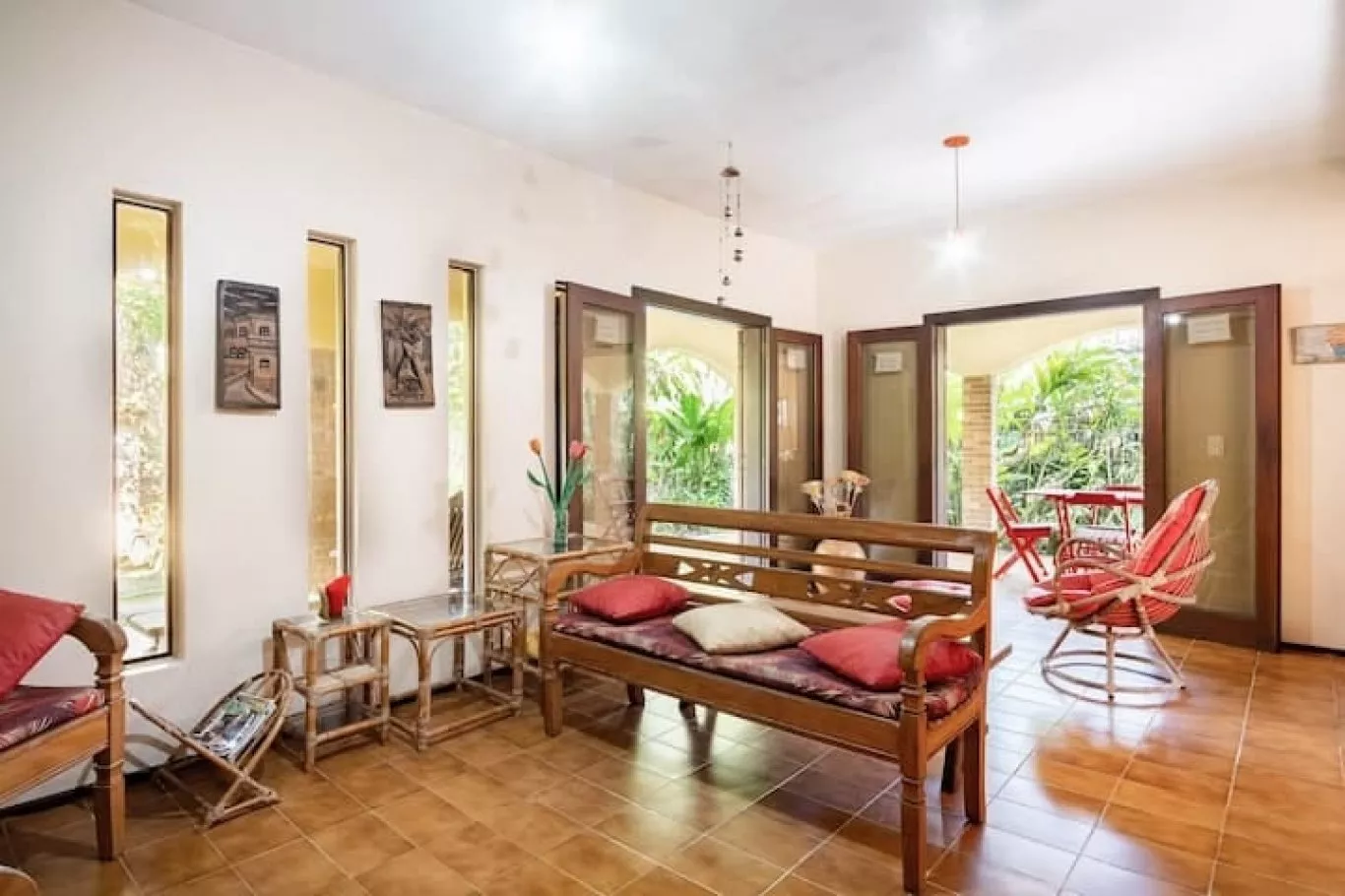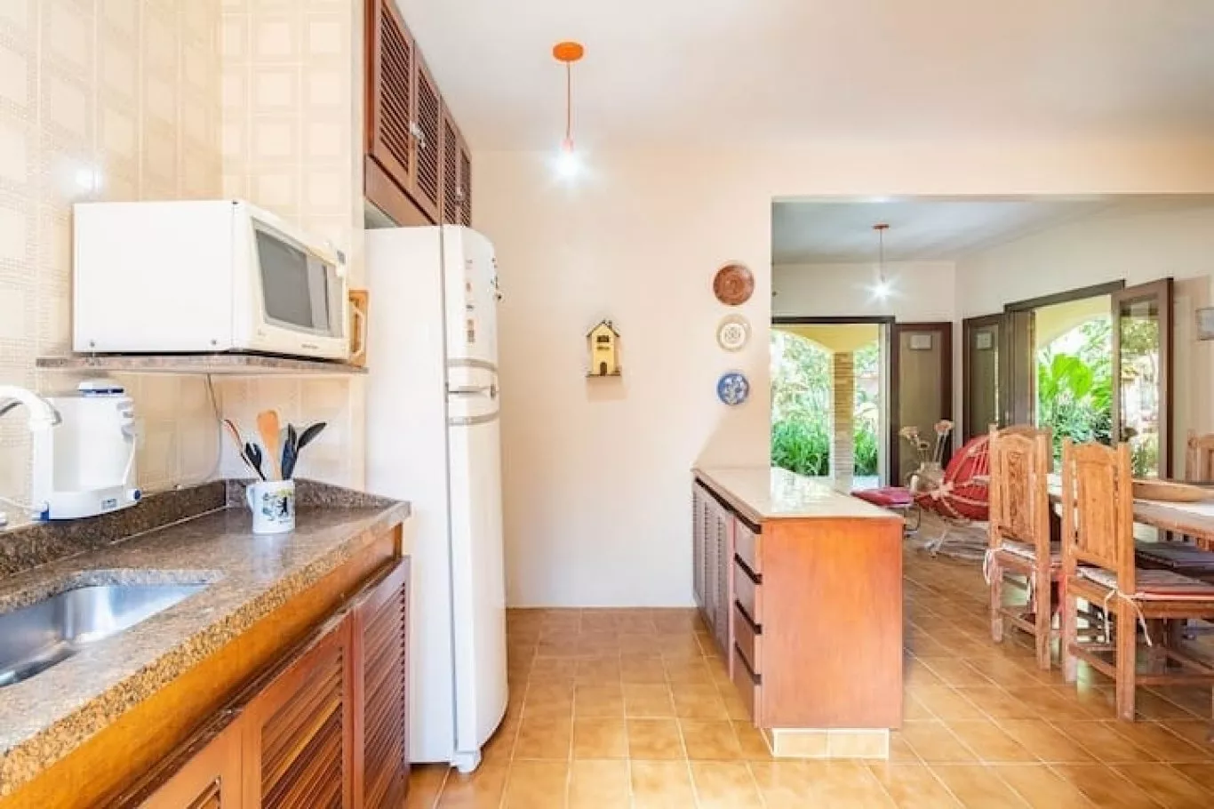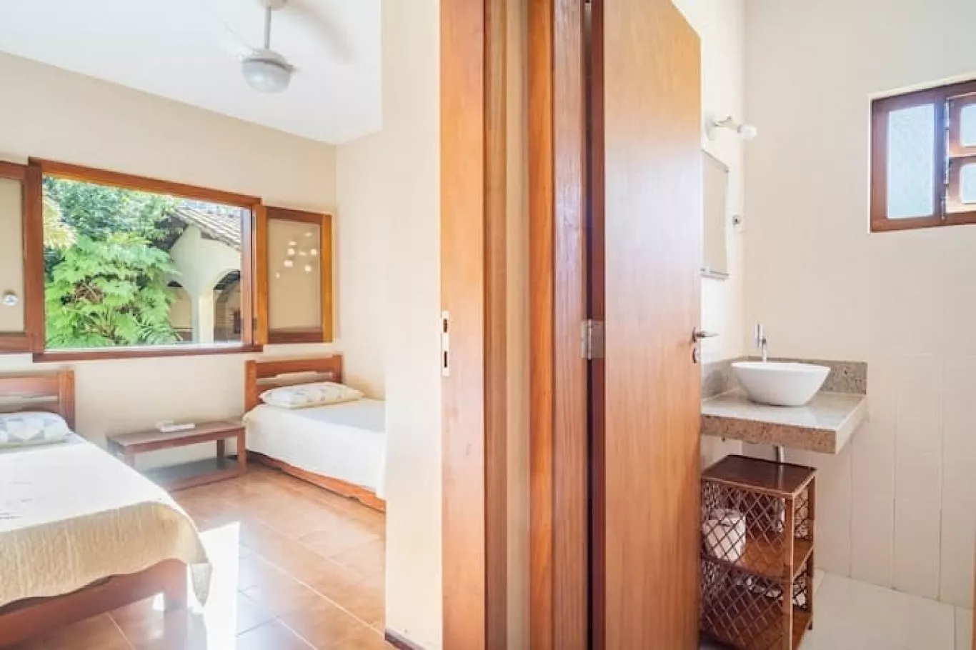Distancia da praia: 100 metros, acomoda até 6 pessoas. Casa super ventilada e ensolarada, com um lindo jardim. São 3 quartos sendo 1 suíte , 1 quarto com uma cama de casal e em 2 quartos com duas camas de solteiro e uma cama infantil cada.