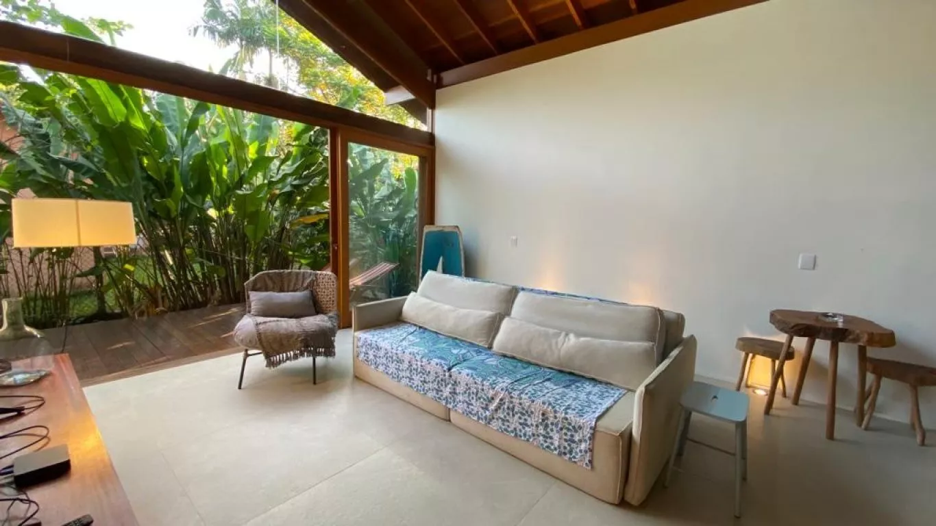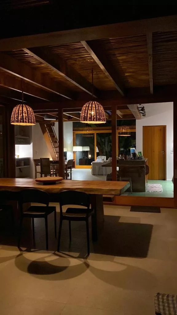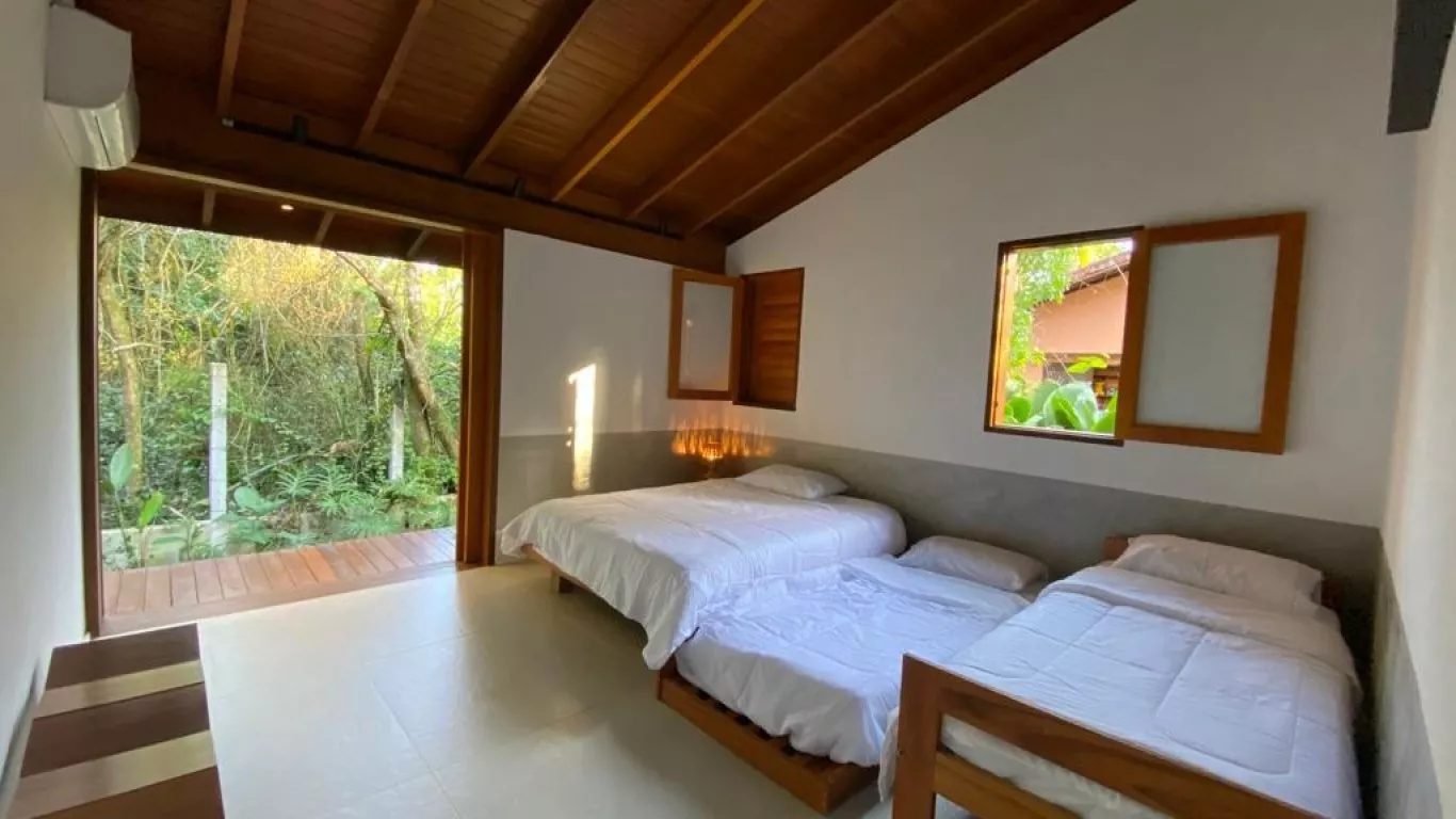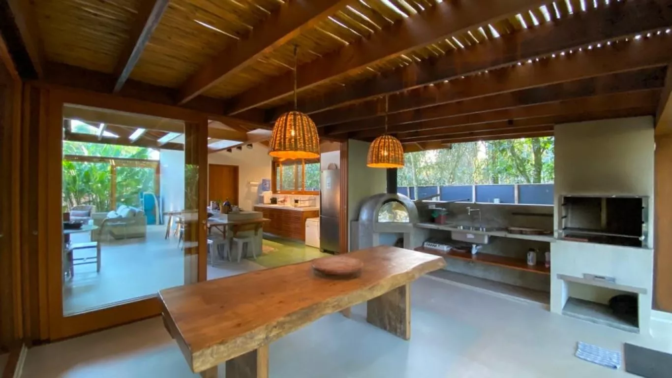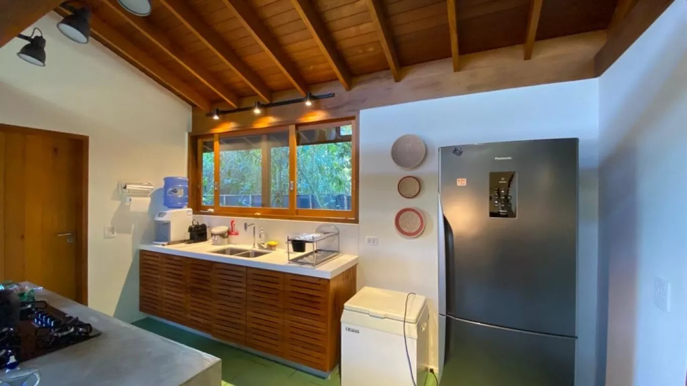 Casa recém construída, com 3 dormitorios, sendo 1 suite (unica com ar condicionado), a 200 metros do mar, rodeada de verda, area gourmet integrada com cozinha.