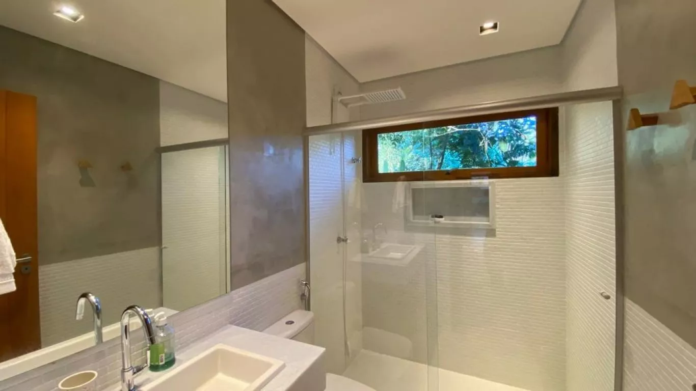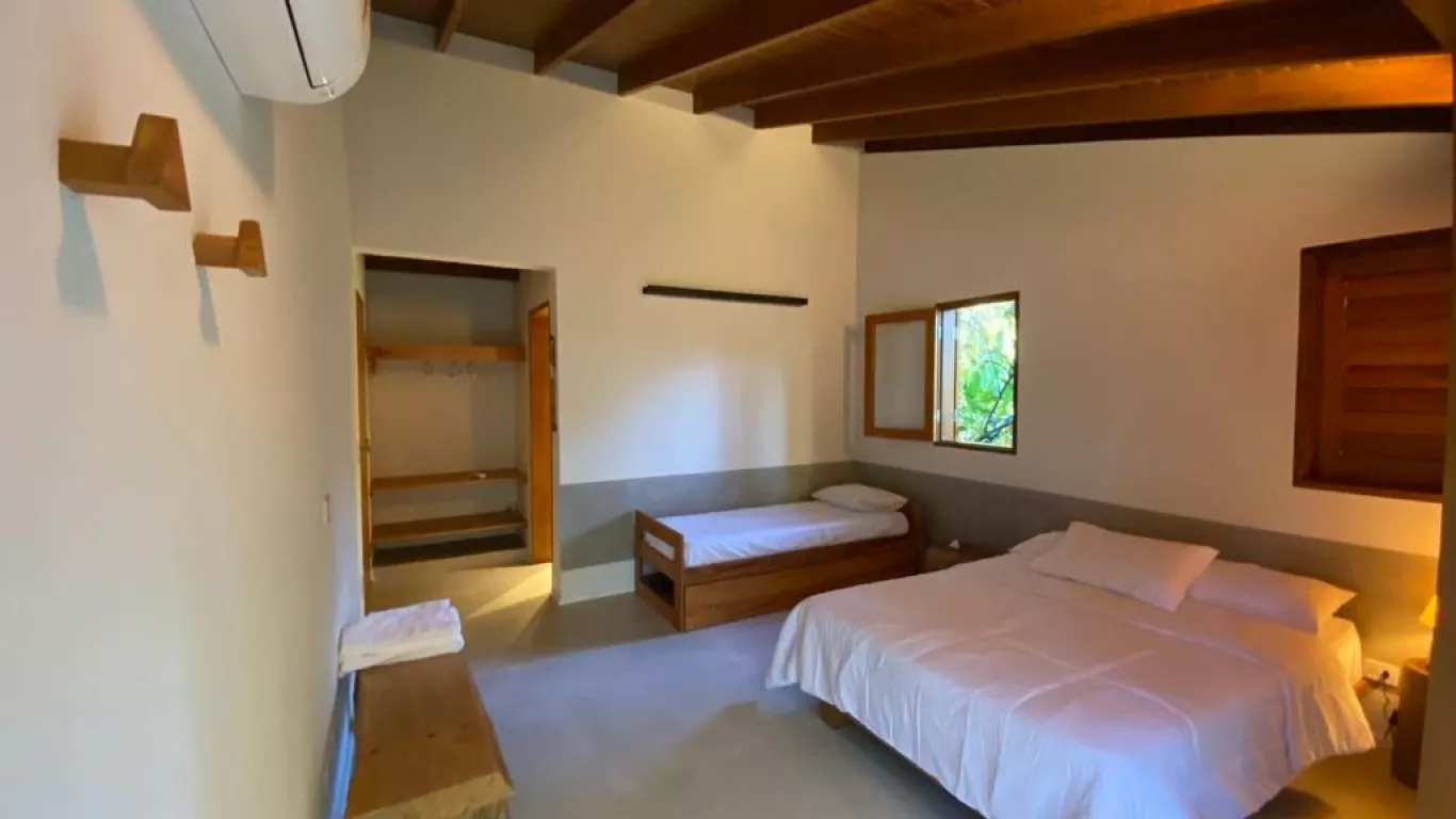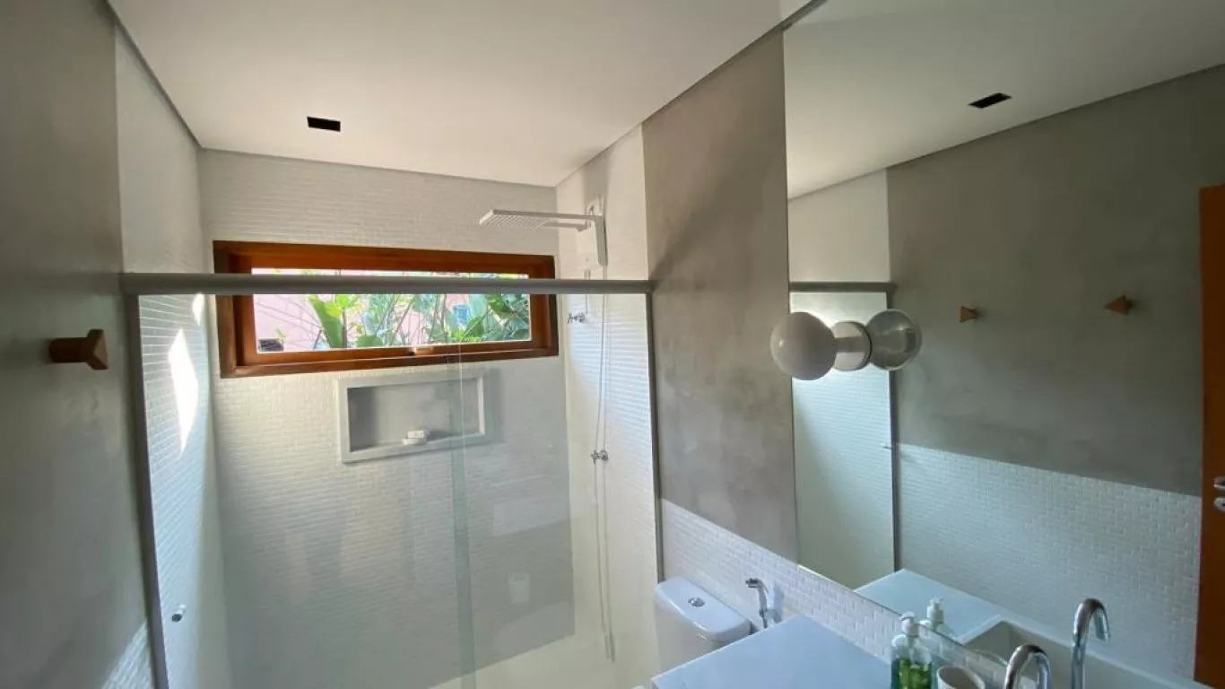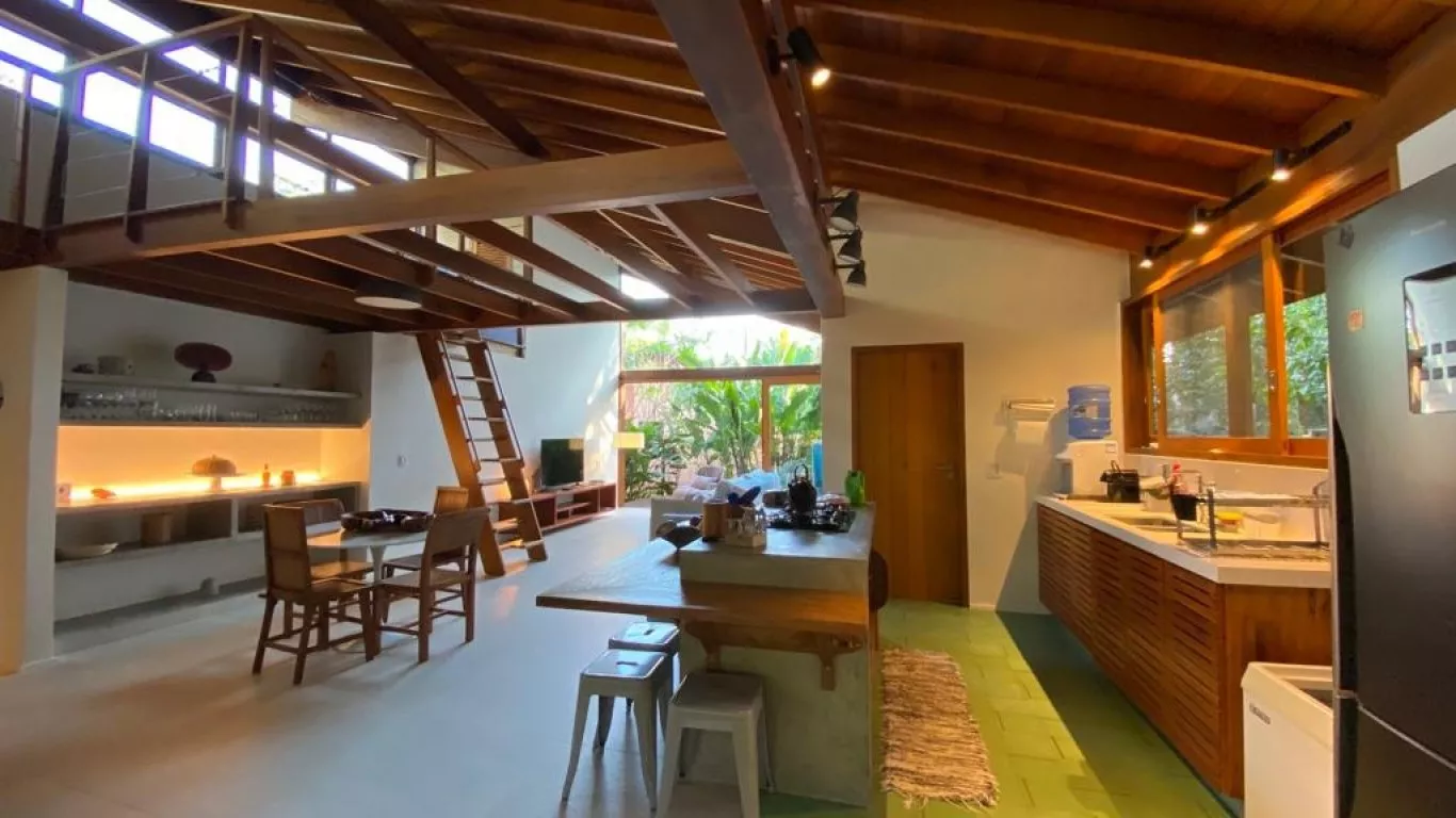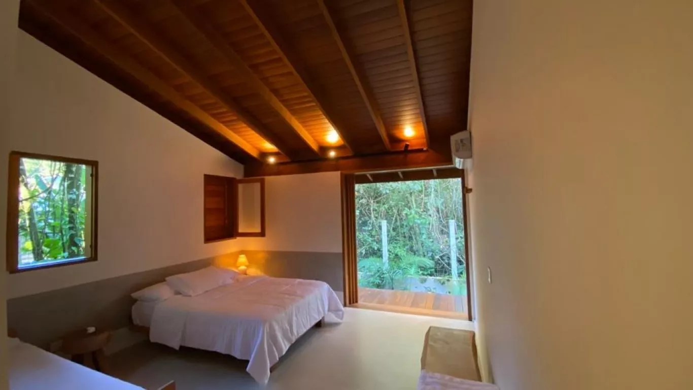 Casa recém construída, com 3 dormitorios, sendo 1 suite (unica com ar condicionado), a 200 metros do mar, rodeada de verda, area gourmet integrada com cozinha.