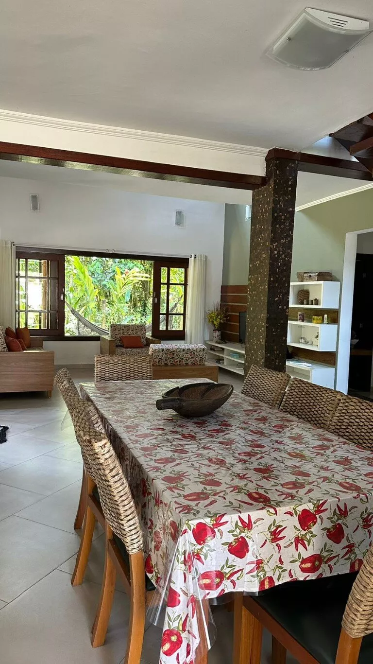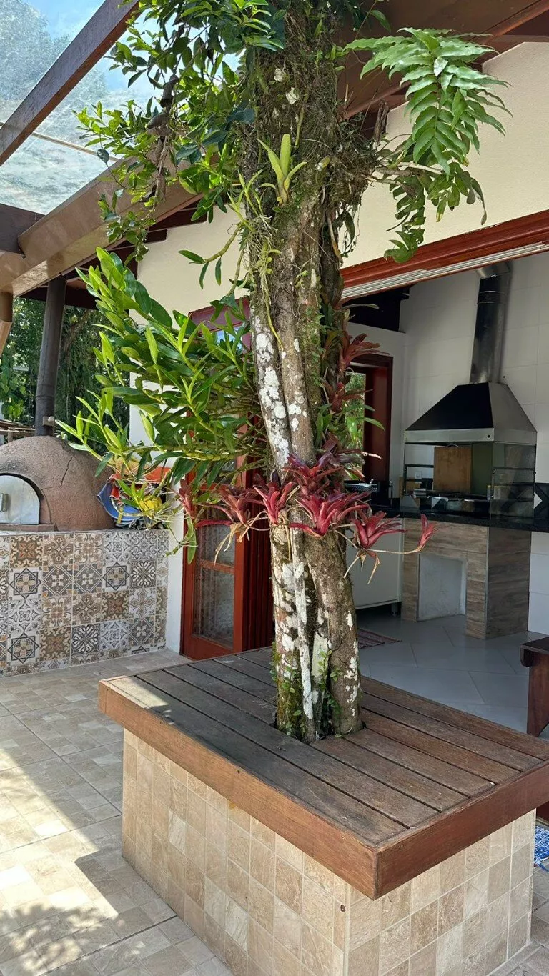 Area de churrasco sala de jantar e churrasqueira integrada .
