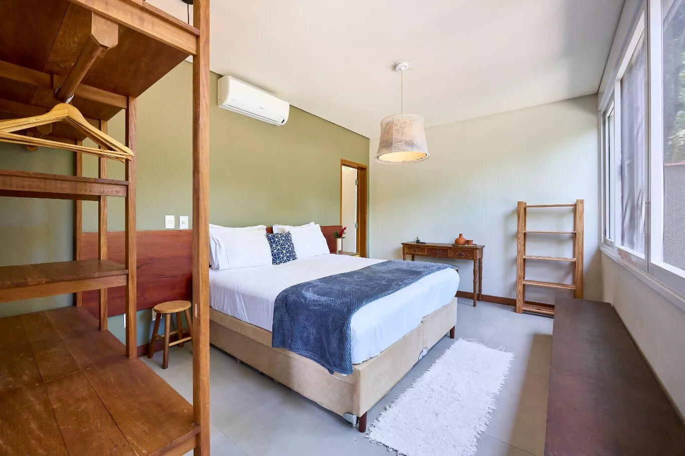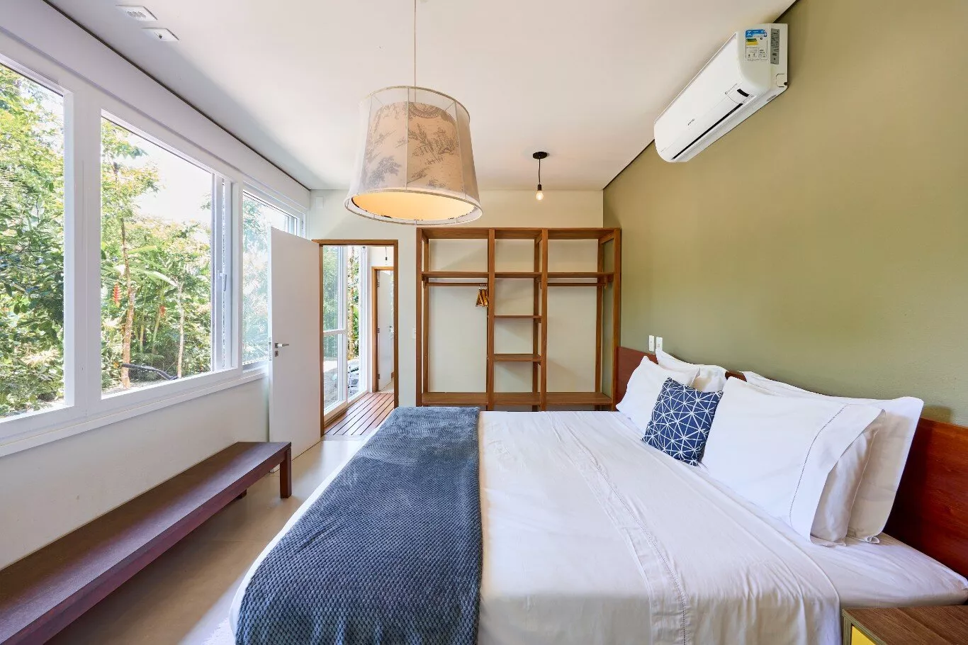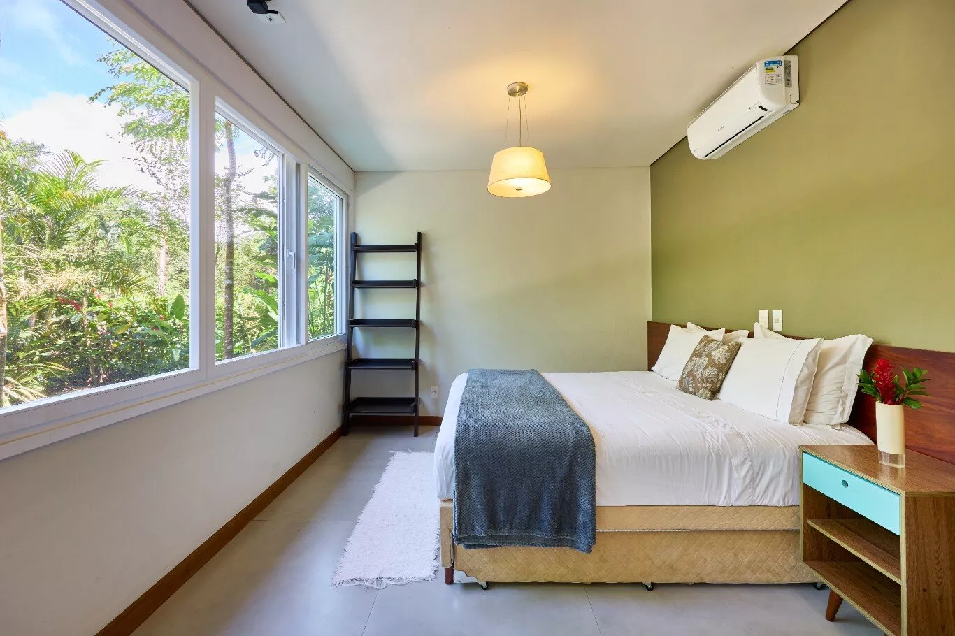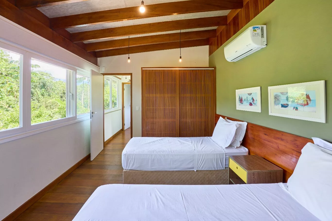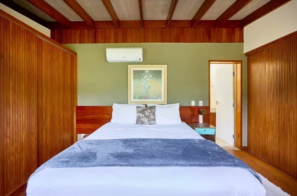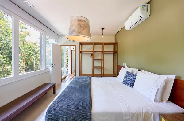 São quatro suítes espaçosas, aconchegantes e iluminadas, com janelas amplas que revelam a exuberância da floresta, todas equipadas com ar-condicionados silenciosos e persianas blackout motorizadas.
