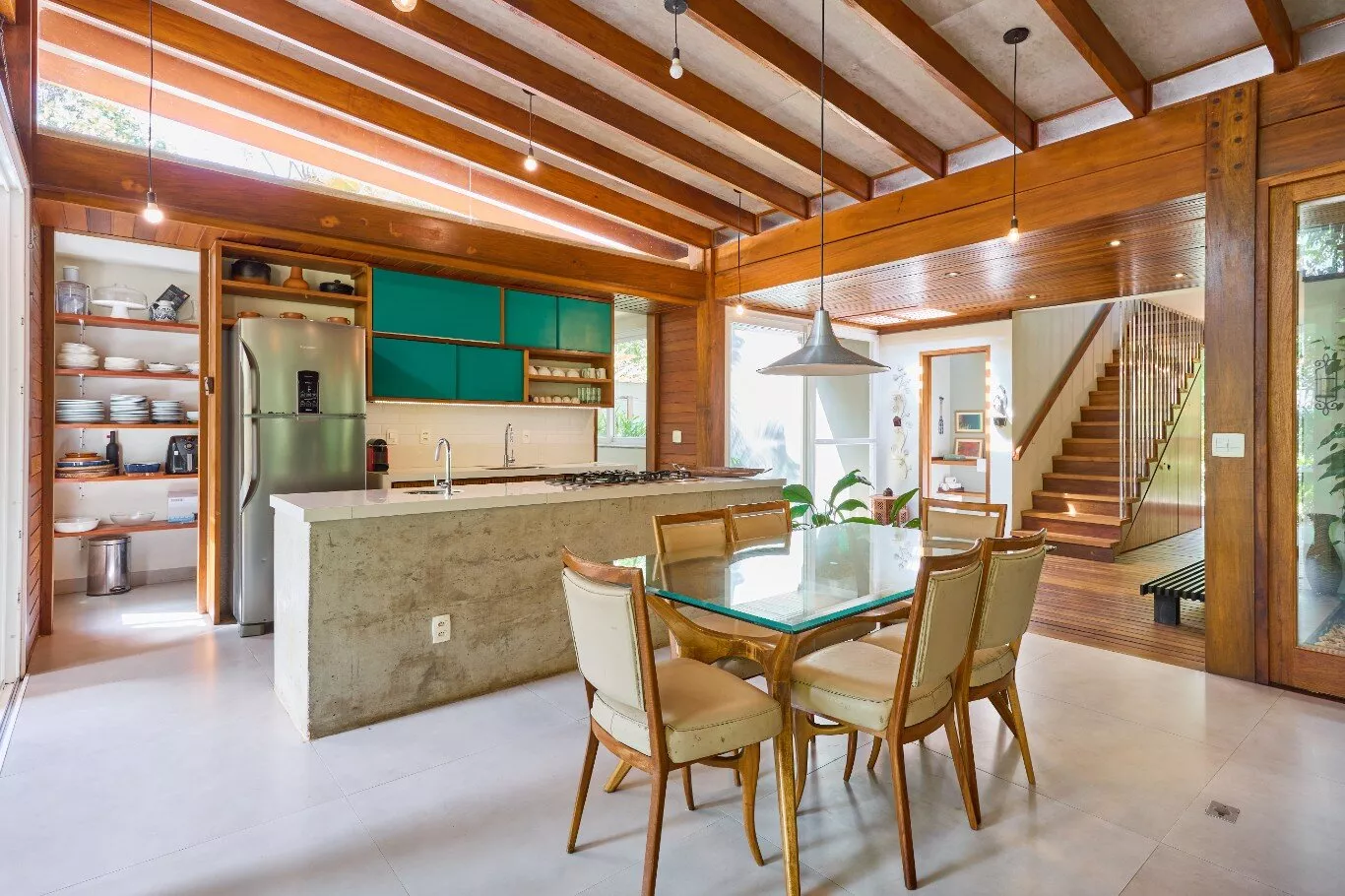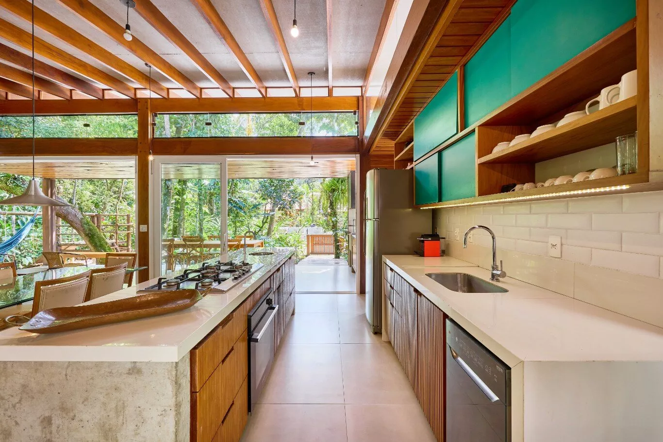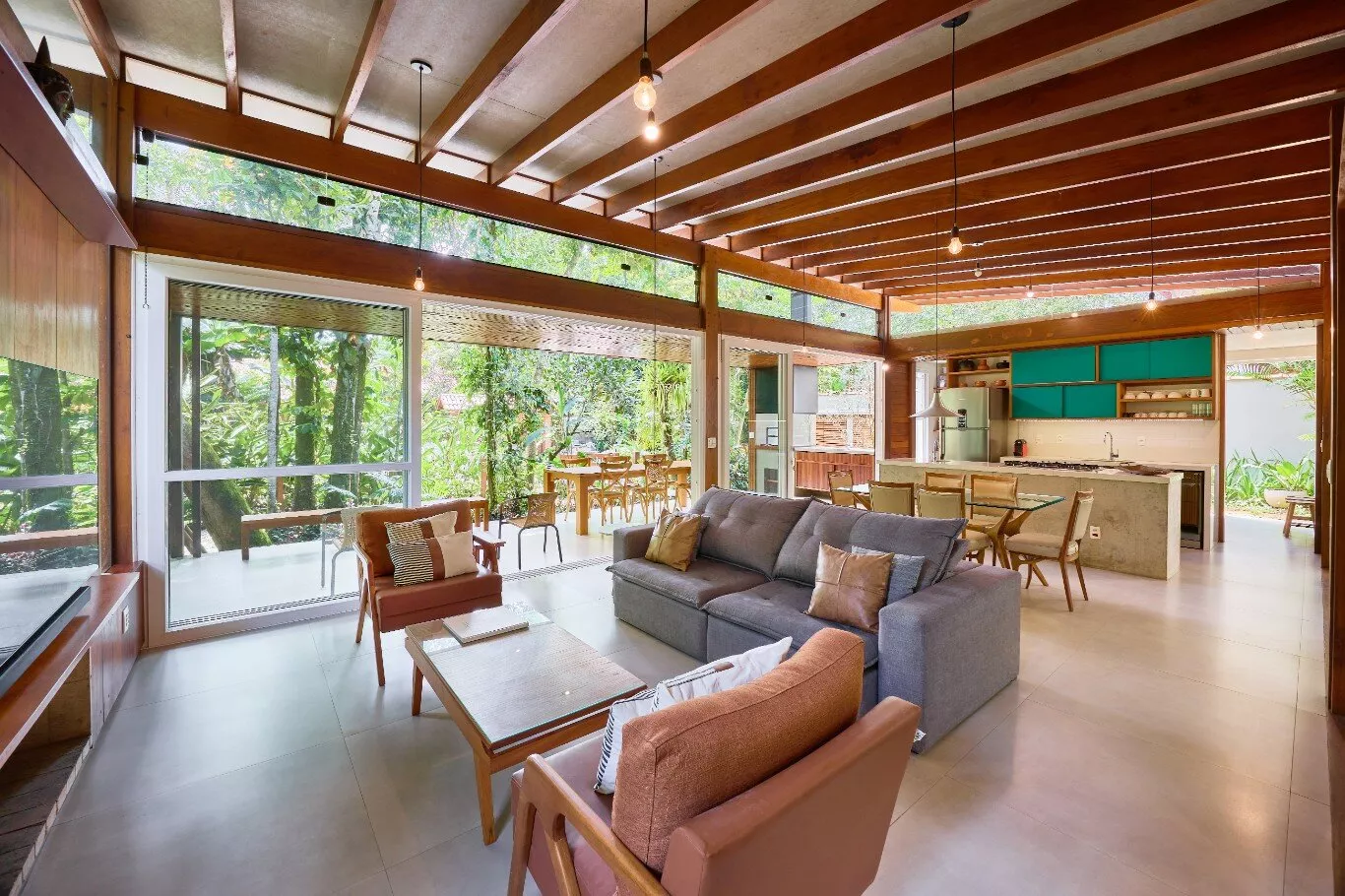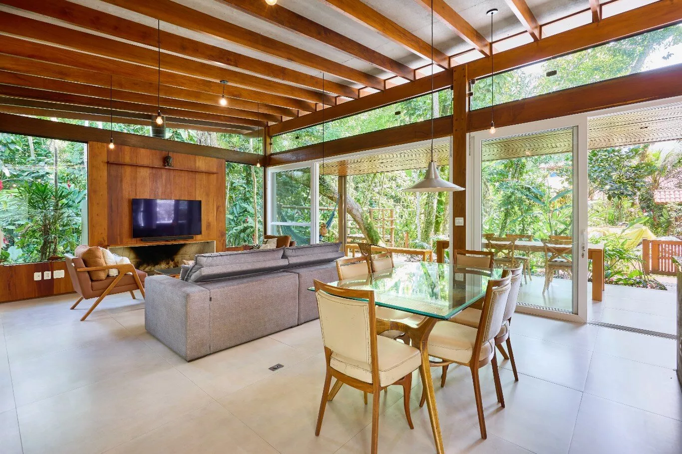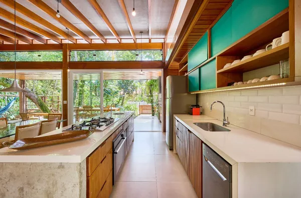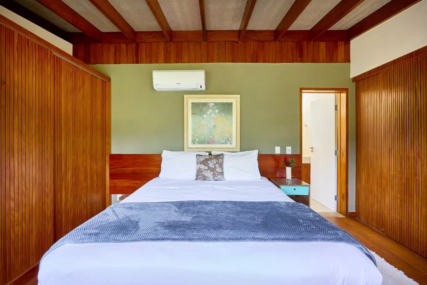 São quatro suítes espaçosas, aconchegantes e iluminadas, com janelas amplas que revelam a exuberância da floresta, todas equipadas com ar-condicionados silenciosos e persianas blackout motorizadas.