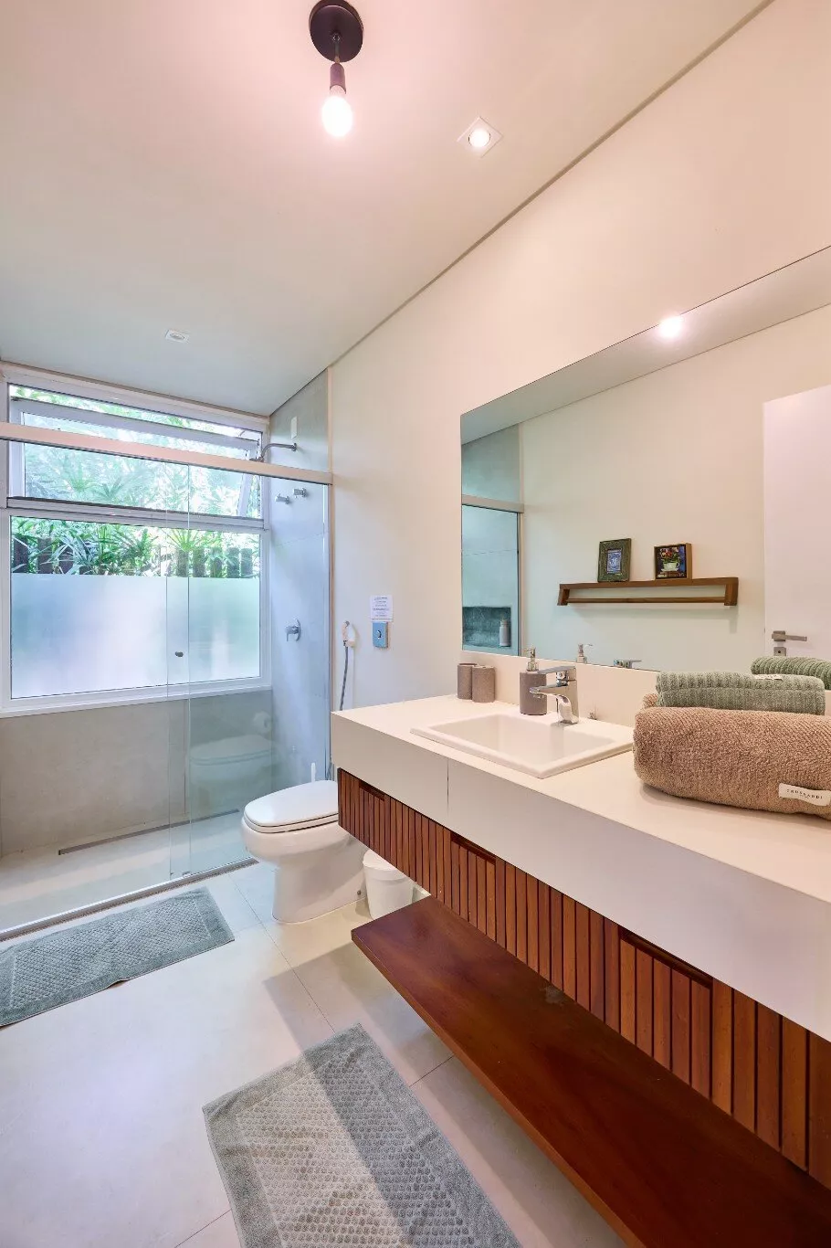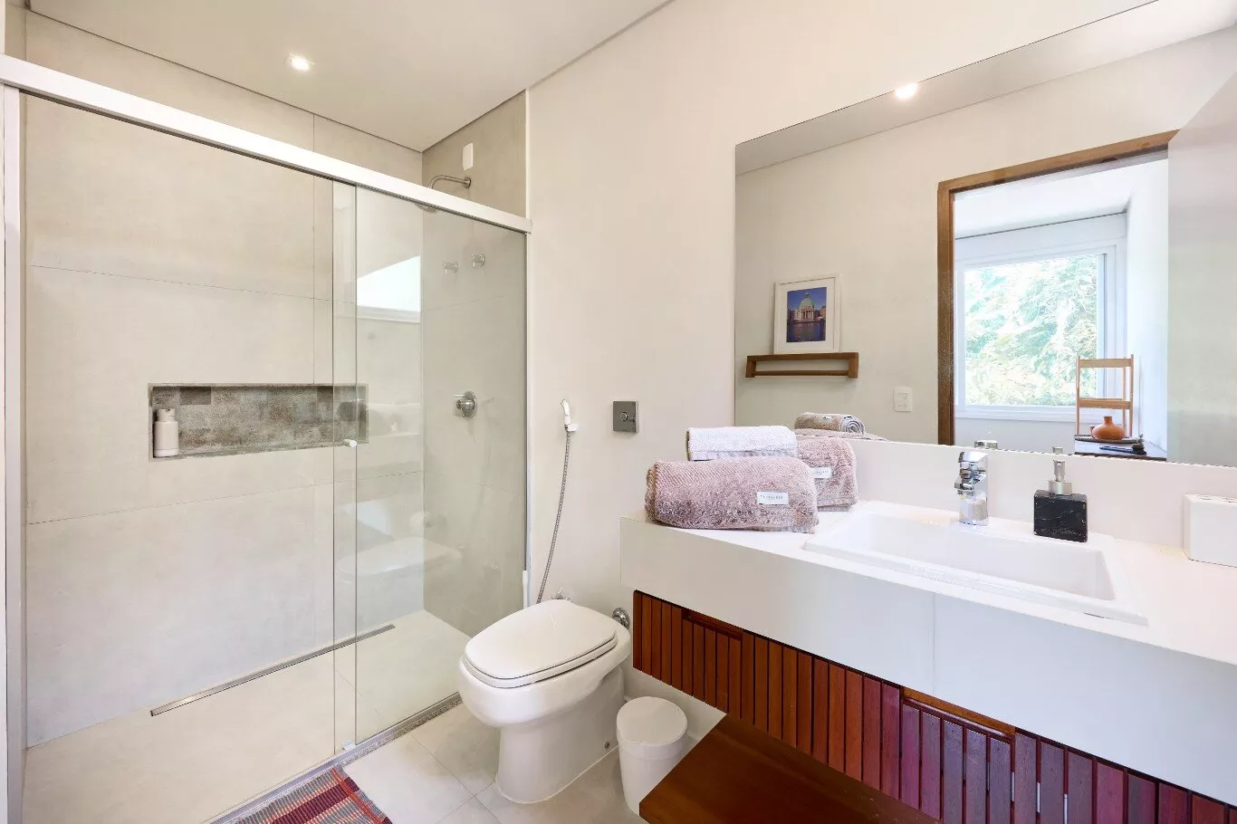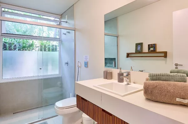Banheiros com chuveiros equipados com torneiras de monocomando, que permitem ajuste perfeito de pressão e temperatura. Você terá a experiência de tomar um banho de hotel 5 estrelas.