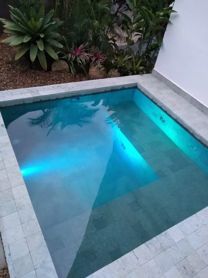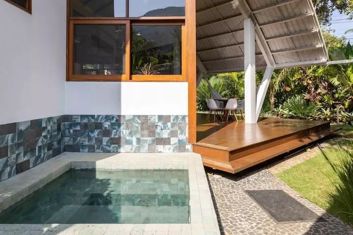 Casa completa com pequena piscina externa tipo SPA (com aquecimento), mais duas jacuzzis nos quartos
