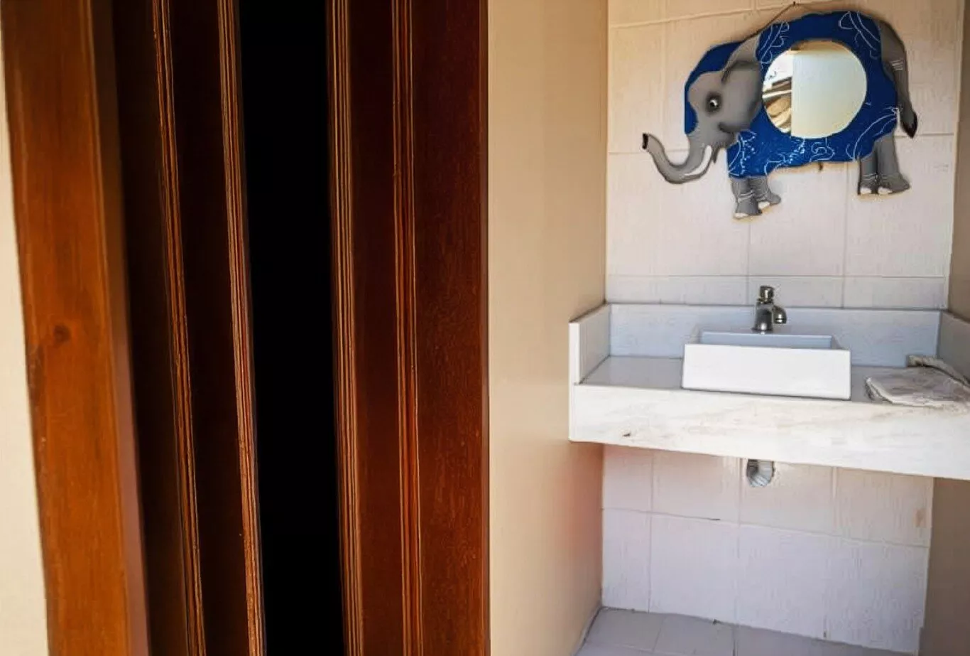 Na parte frontal, uma árvore frondosa proporciona privacidade e sombra, enquanto a ducha externa com revestimento em eucalipto adiciona um toque especial de charme e frescor. A casa ainda dispõe de lavanderia fechada e uma varanda de apoio, completando a estrutura com praticidade.
