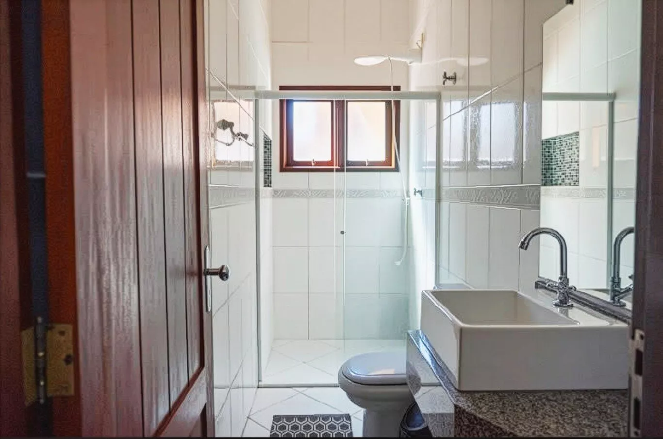 O imóvel conta com cinco dormitórios, sendo dois no térreo, duas suítes no andar superior e um cômodo reversível, que pode ser utilizado como sala extra ou mais um quarto, adaptando-se às suas necessidades.