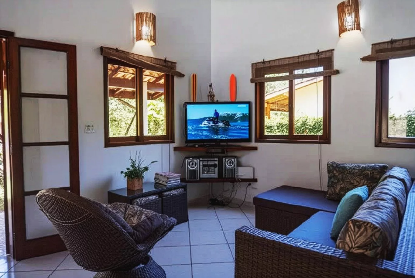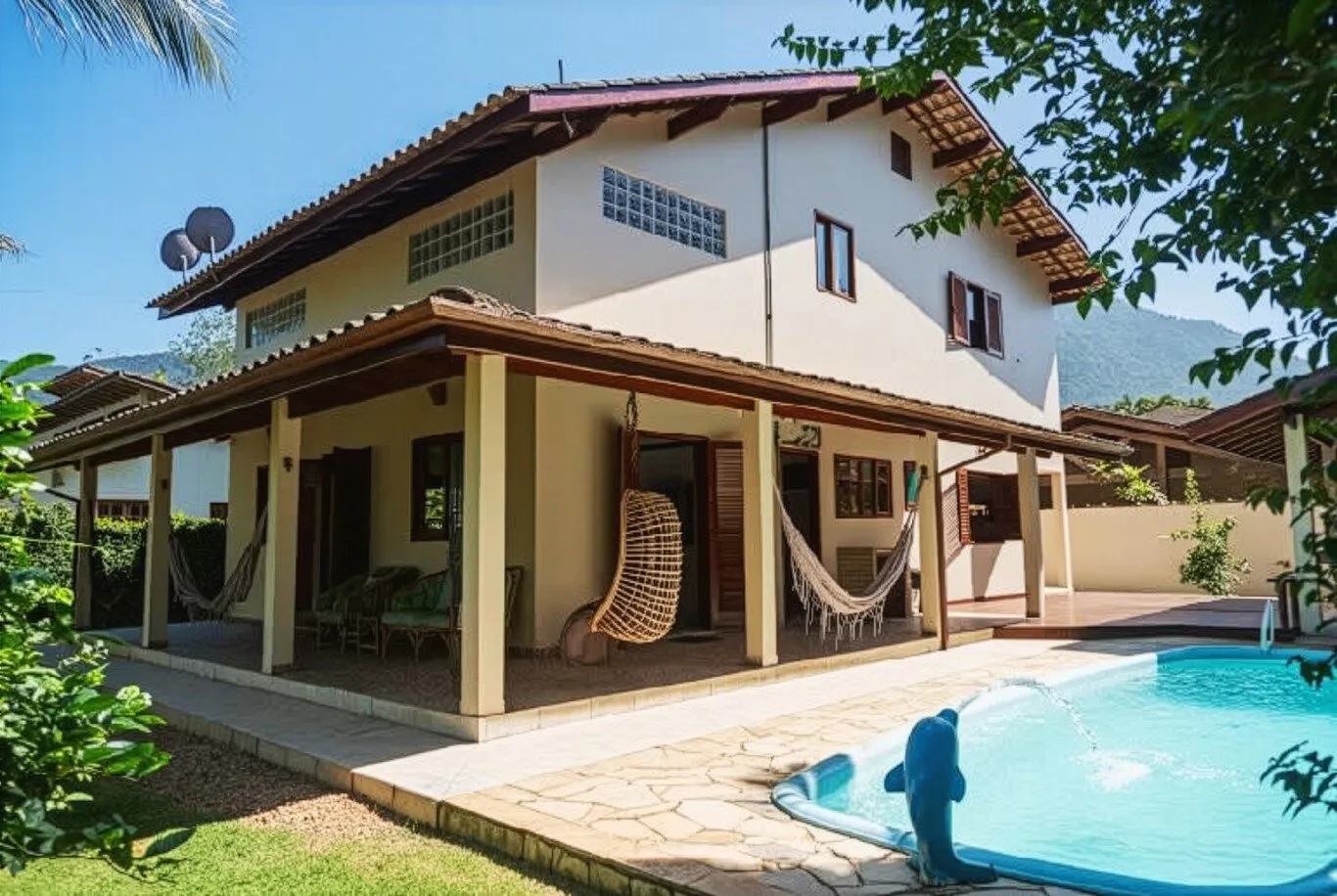 A apenas 300 metros da praia, esta casa com piscina oferece o equilíbrio perfeito entre lazer, conforto e contato com a natureza. O living espaçoso se integra à cozinha americana completamente equipada, criando um ambiente acolhedor e funcional para momentos em família ou entre amigos.